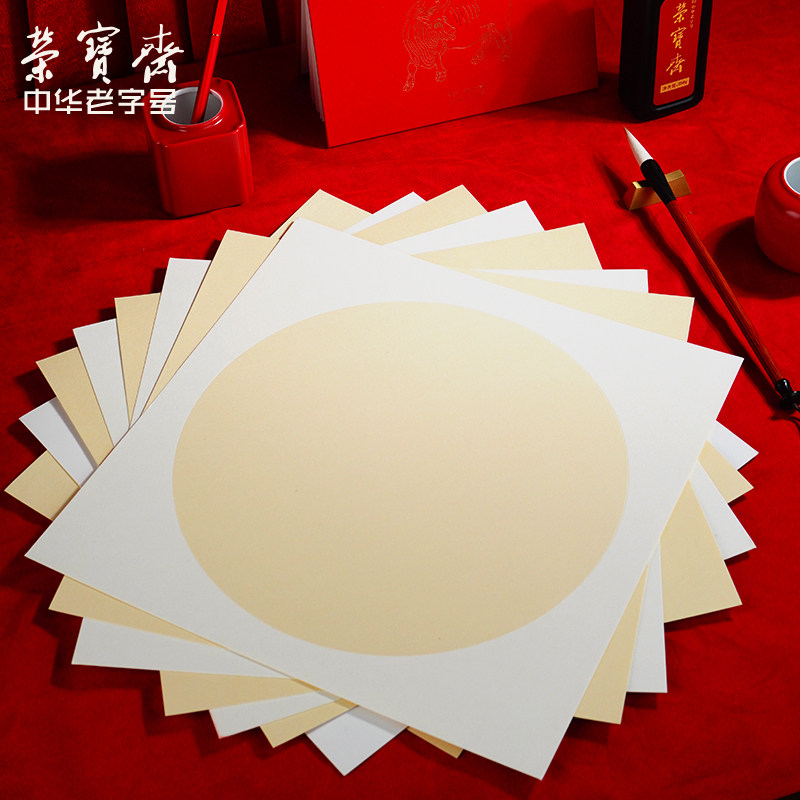 📚 荣宝斋日星宣纸卡纸加厚宣纸国画扇面宣纸卡纸空白熟书画练习纸工笔画毛笔书法半生熟水彩画软卡生宣镜片卡纸