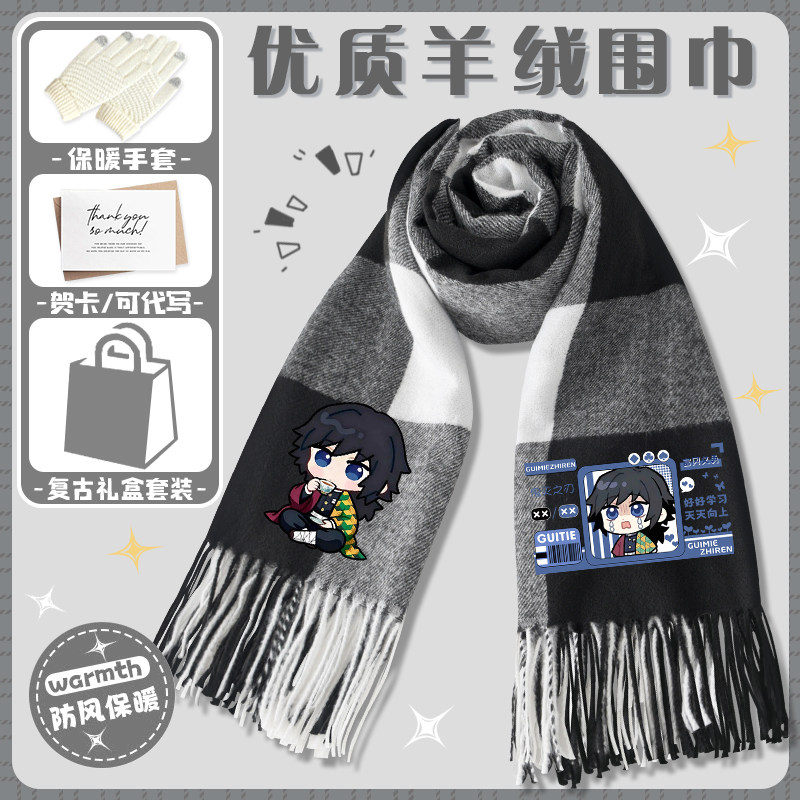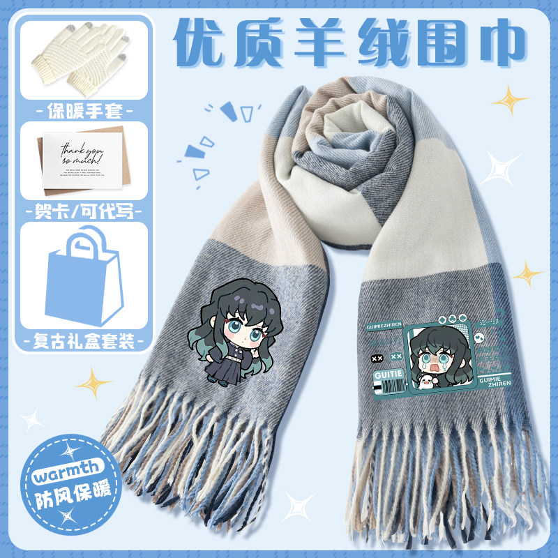 📚 鬼灭之刃围巾蝴蝶忍祢豆子小芭内二次元动漫周边冬季保暖围脖送礼