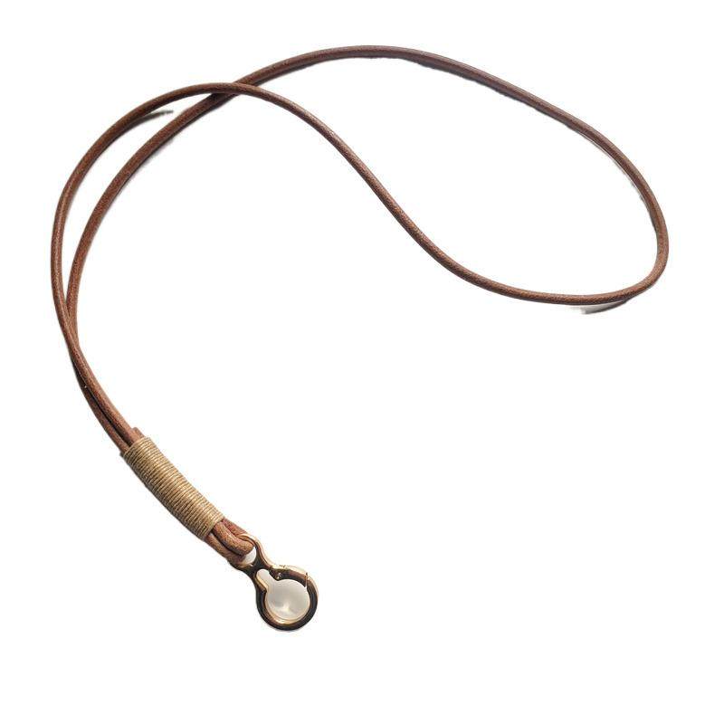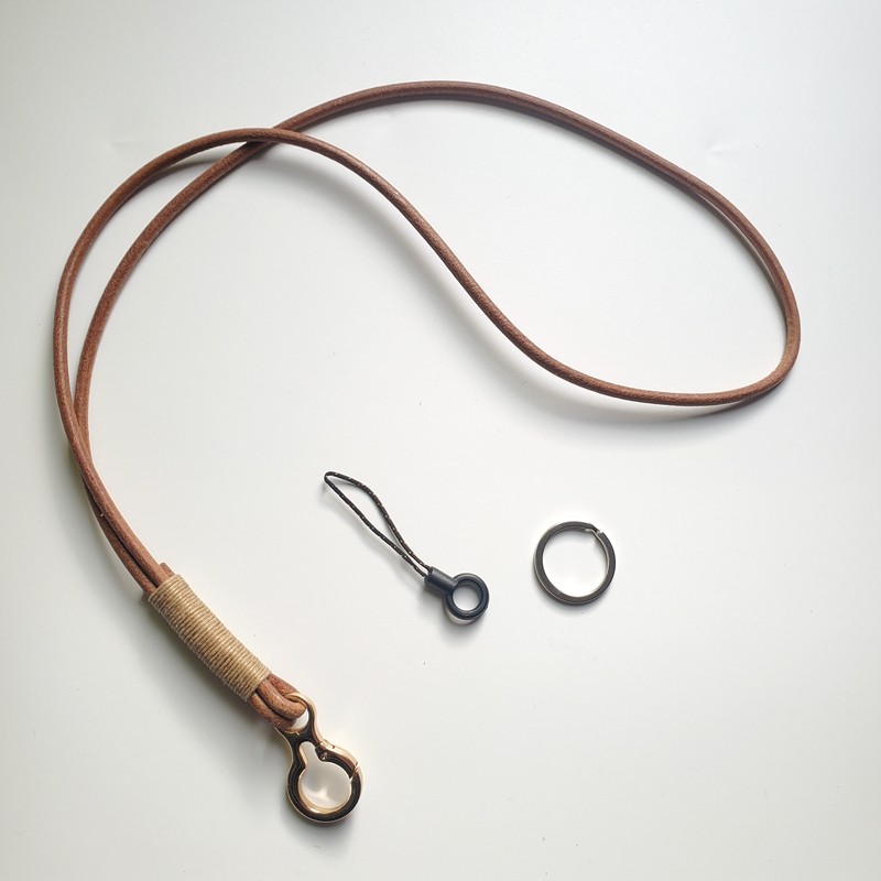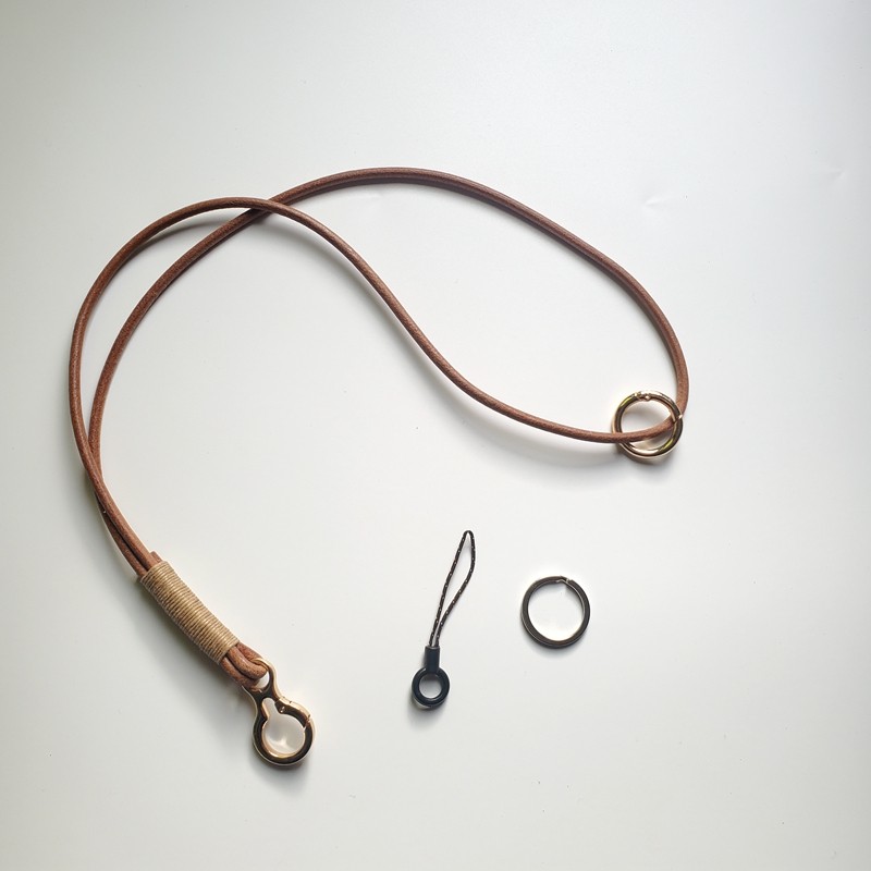📚 纯天然牛皮绳金色金属钥匙扣编织汽车圈链礼物包包挂件防丢挂脖件