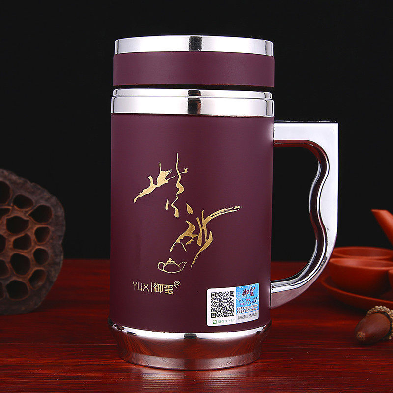📚 宜兴紫砂内胆茶杯男女士磁化盖养生杯生态茶杯大口径车载礼品水杯