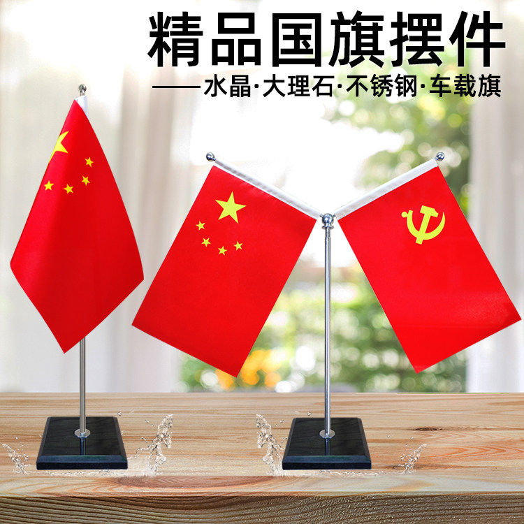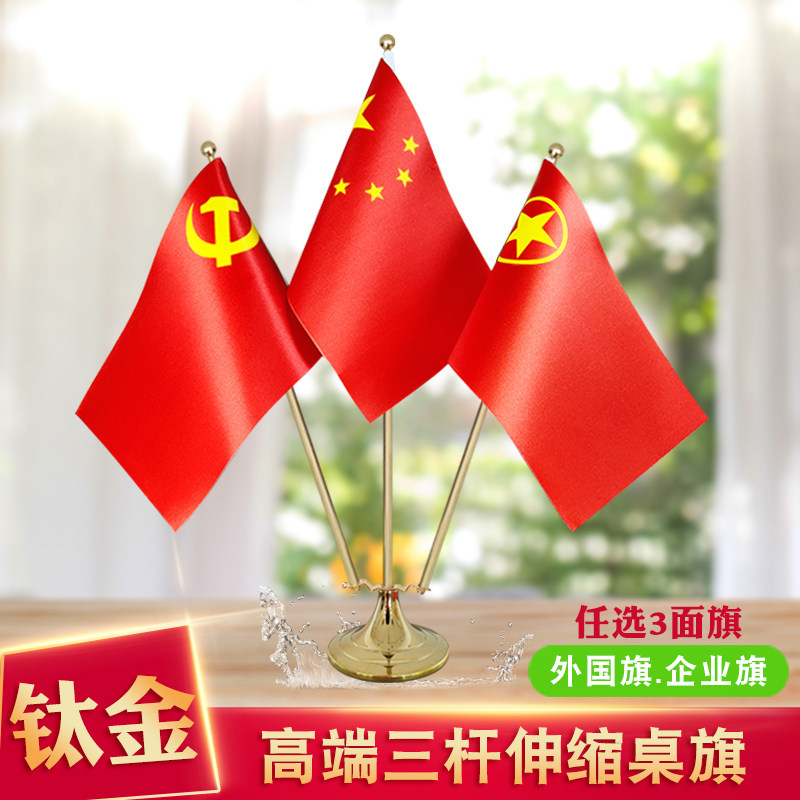 📚 桌面Y型水晶国旗党旗摆件办公桌上单杆伸缩三杆台式小红旗杆台式旗会议室