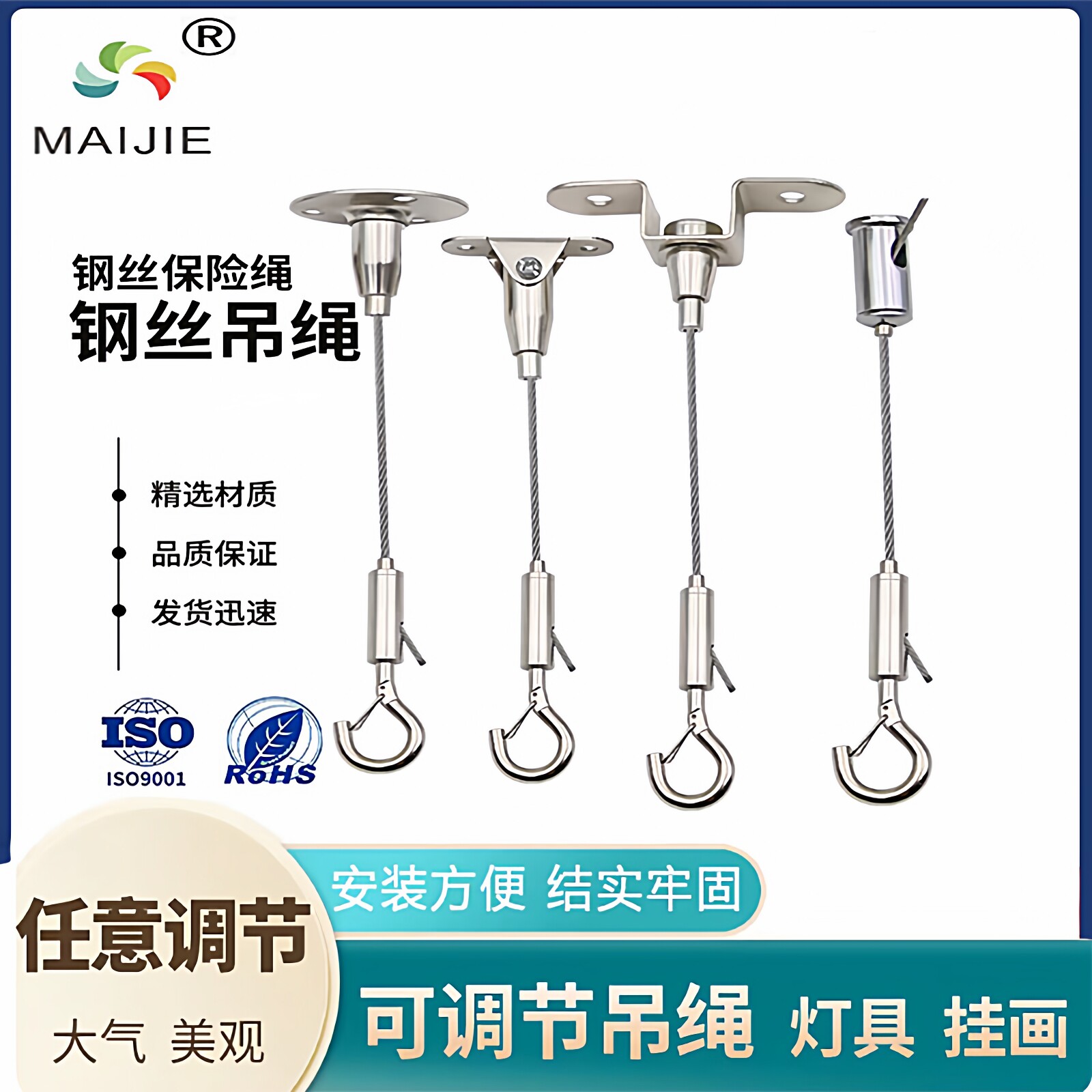 📚 钢丝绳吊码可调节吊件灯饰钢丝绳灯具挂绳吊线吊牌吊绳挂钩挂画线