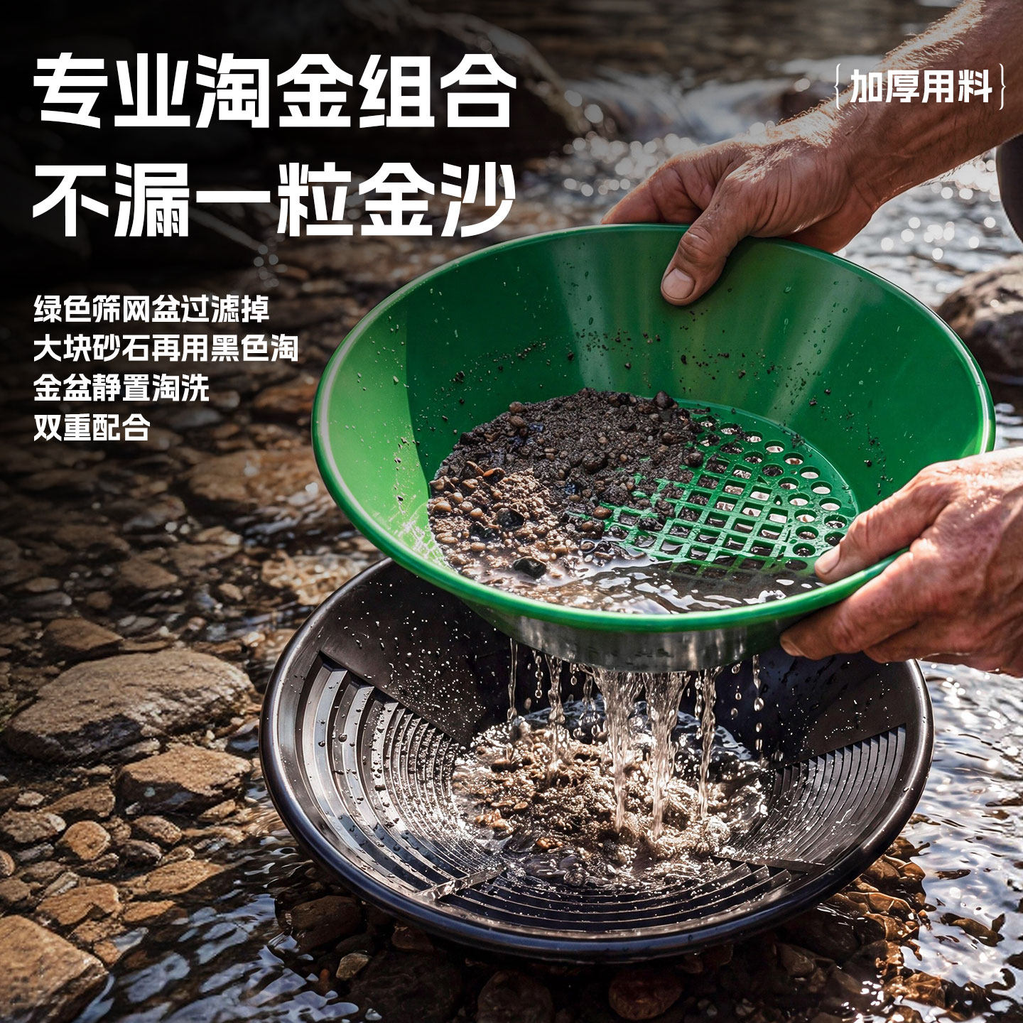 📚 淘金盆手摇便携式淘金盘大号筛子淘金沙工具全套锥形老式洗金盆