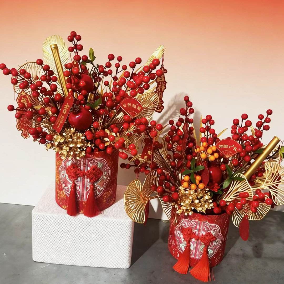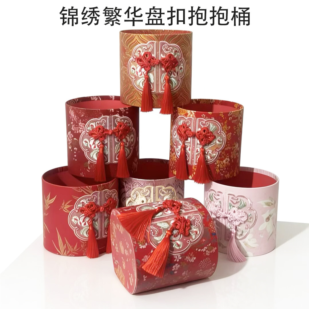 📚 2026新款锦绣繁华盘扣流苏新中式抱抱桶福桶插花桶空桶年宵花材料
