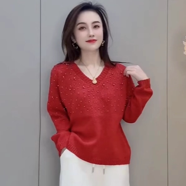 69¥ CZ007 1MEhUEHPp7E¥ https://m.tb.cn/h.iVSzvJy 2026春秋新年红色V领重工钉珠针织衫女长袖百搭洋气减龄毛衣上衣 --------------------- 【原售价】118元 【现售价】75元。