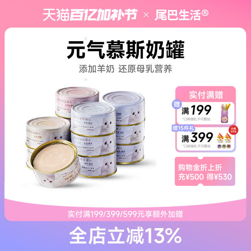 📚 尾巴生活元气奶罐80g*24罐整箱猫咪慕斯成猫幼猫罐头羊奶零食