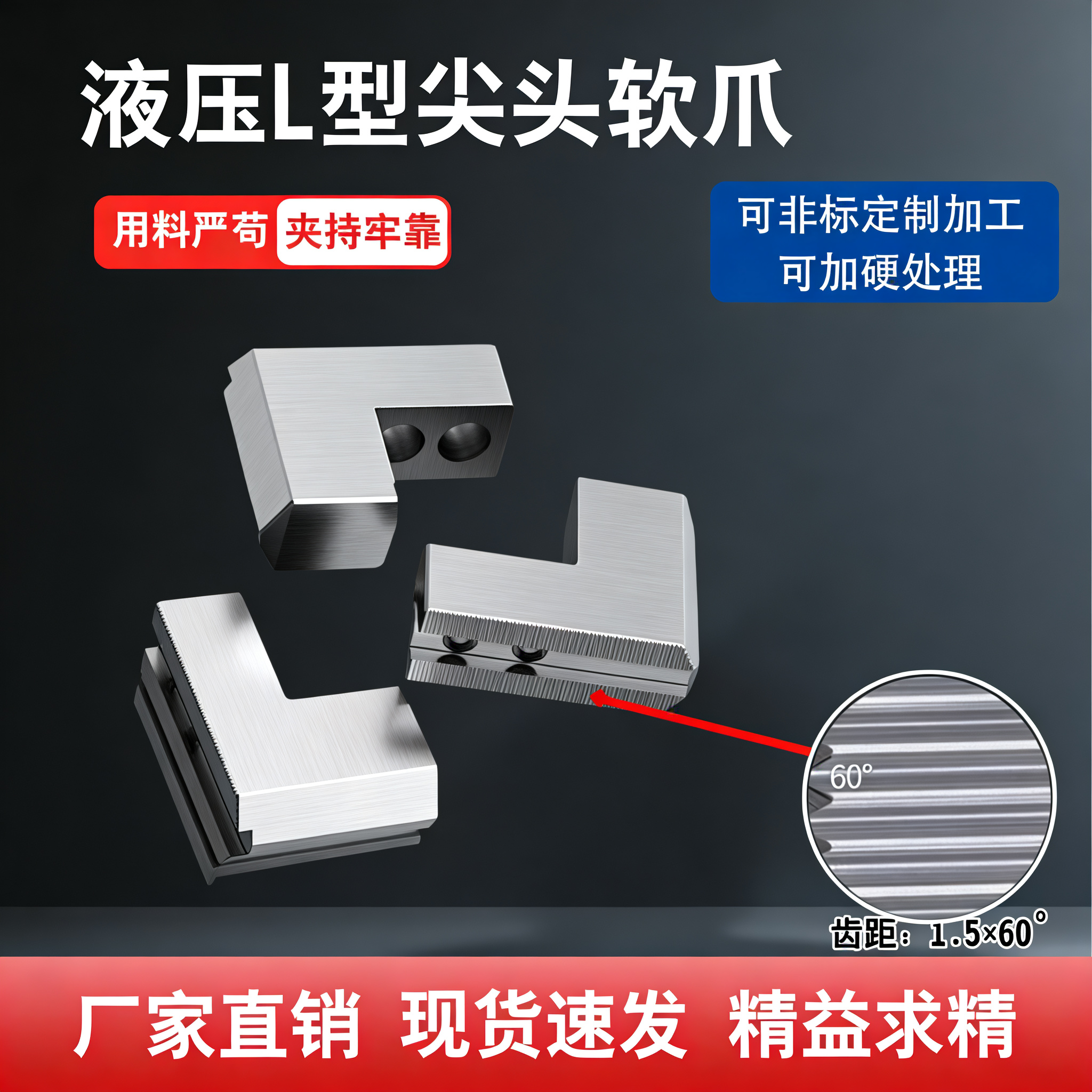 📚 液压软爪L型尖角加高软爪内撑爪台阶卡爪正爪油压生三爪外夹反爪