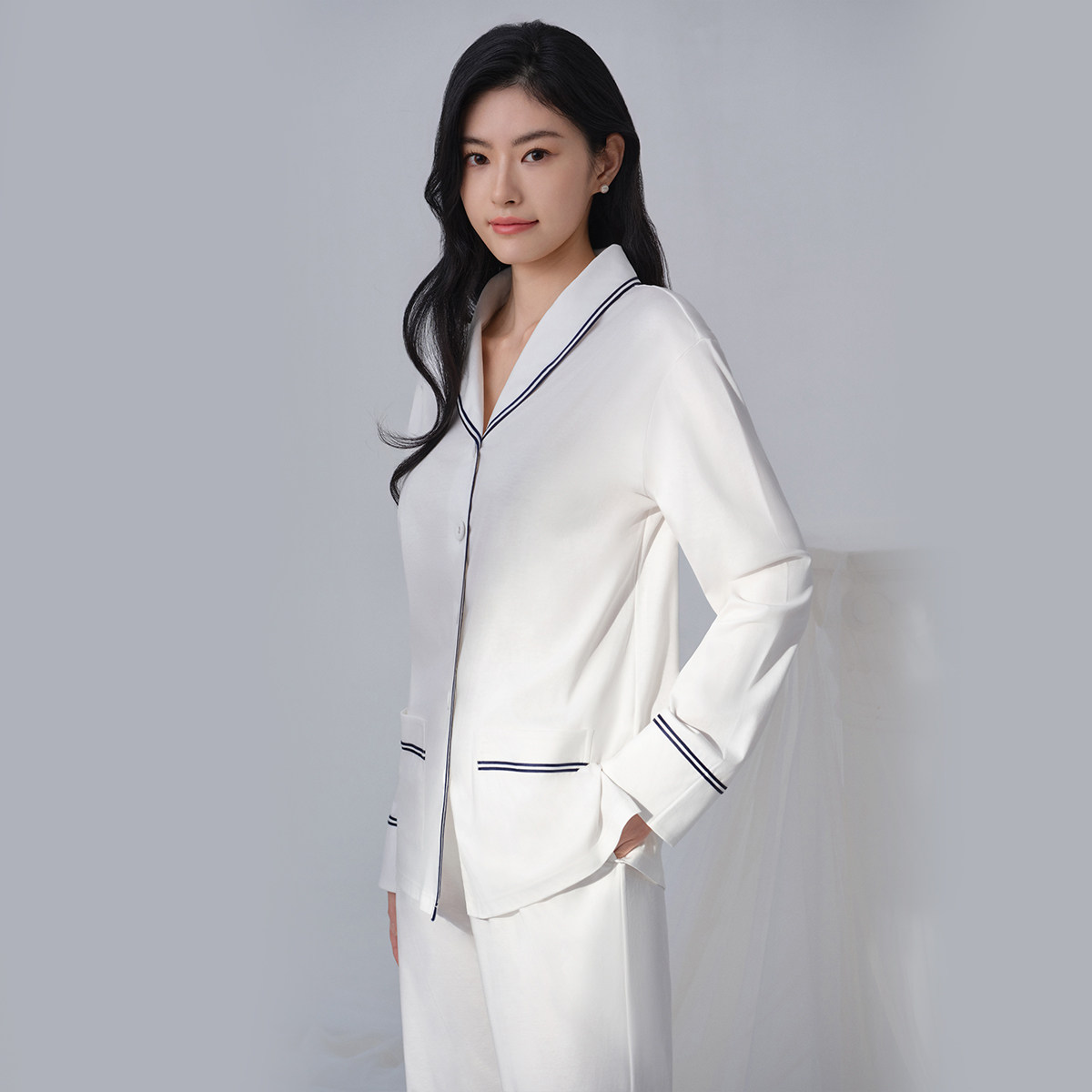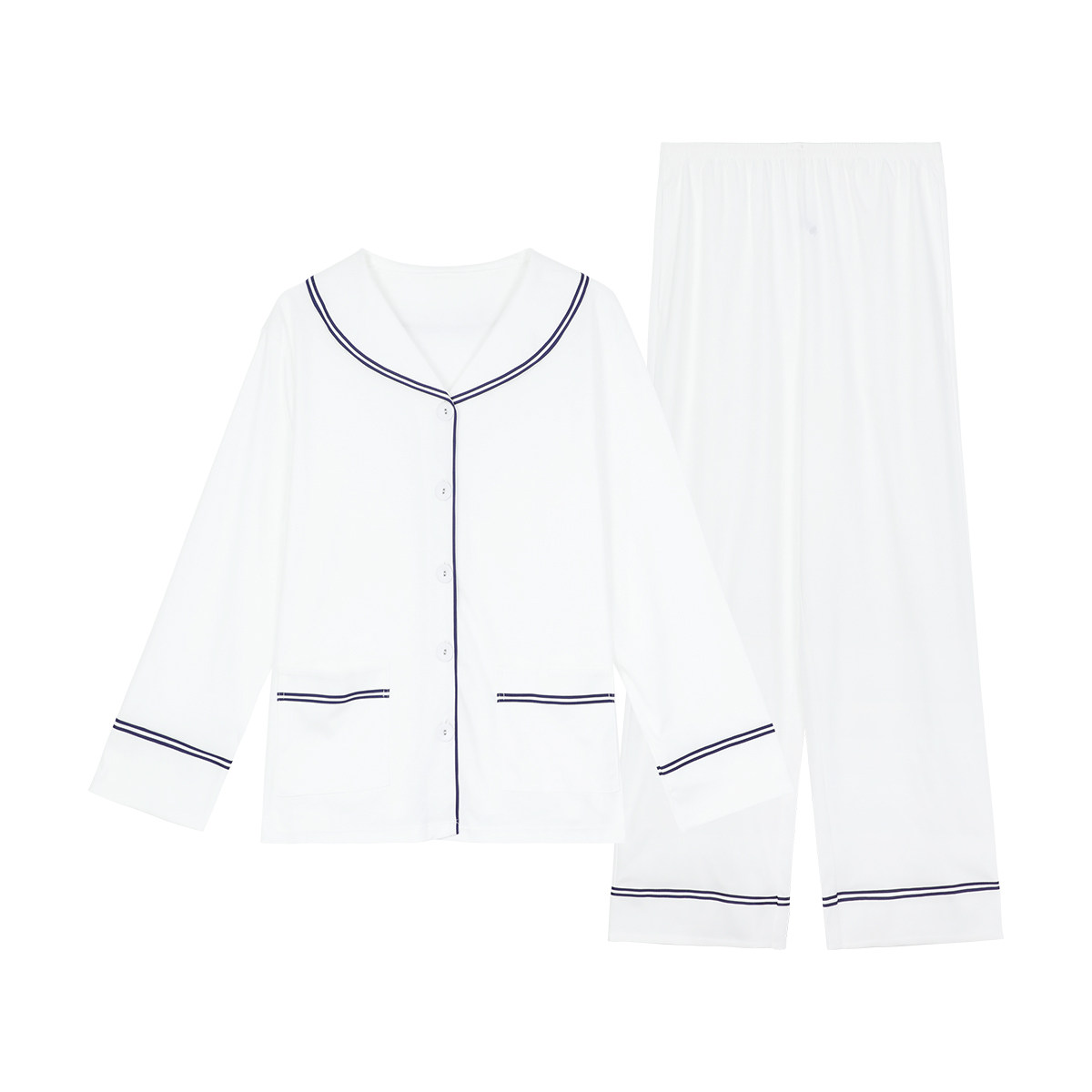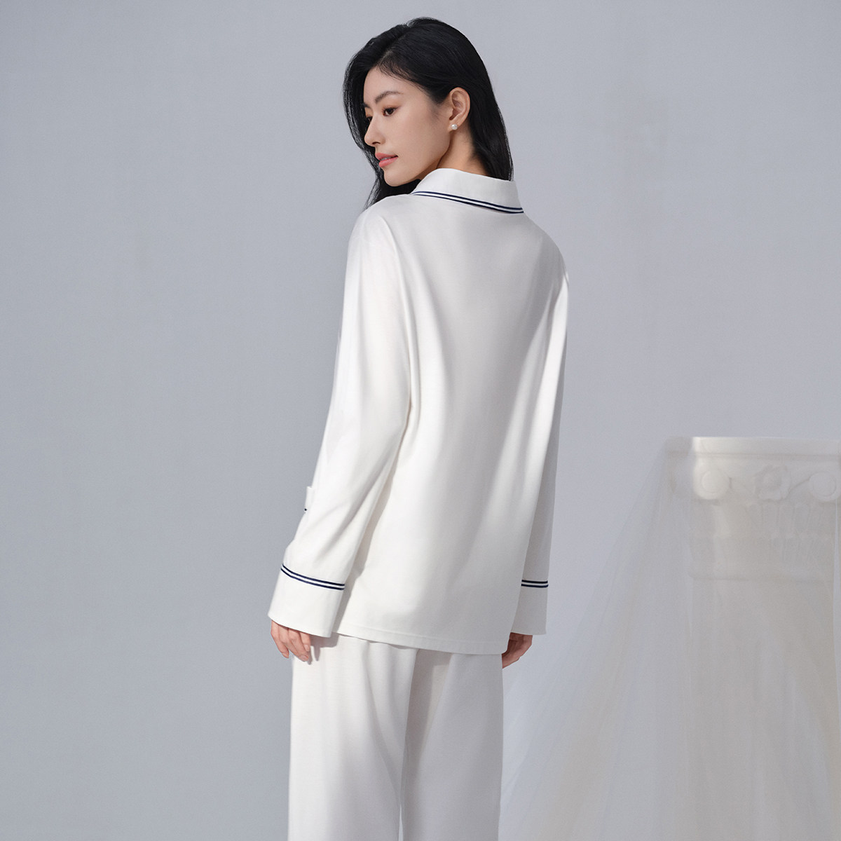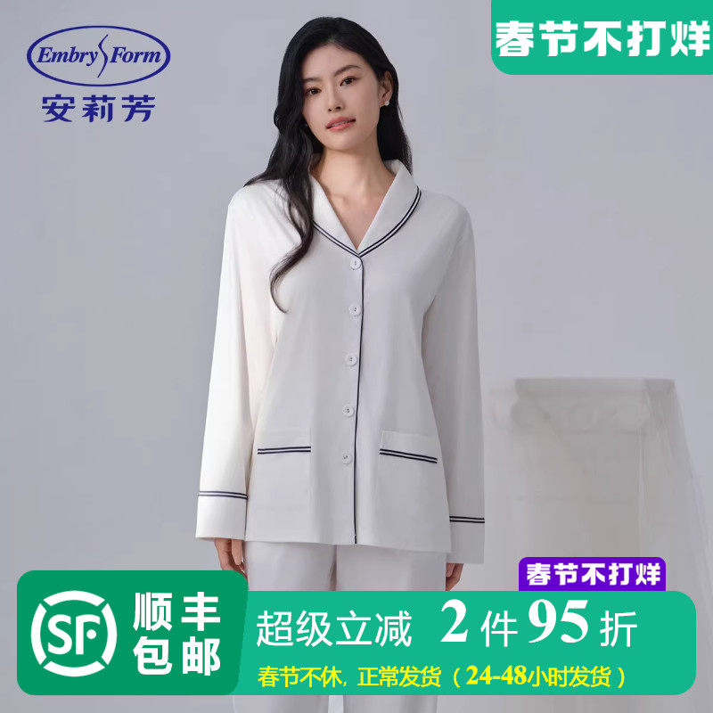 📚 【商场同款】安莉芳睡衣睡裤套装女棉麻混纺乳白色翻领家居服长裤