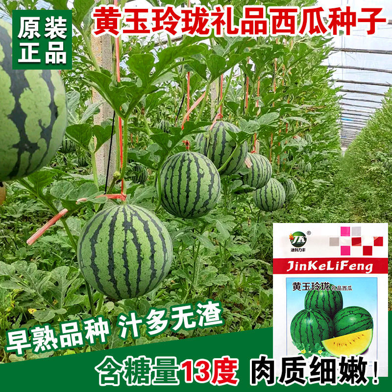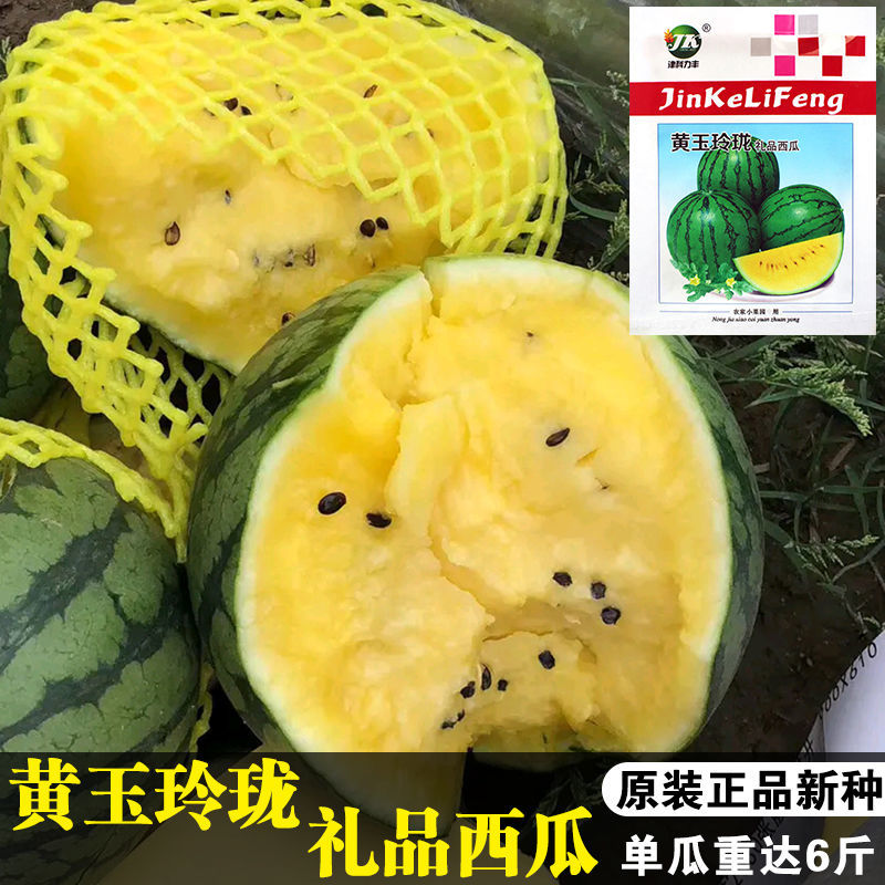 📚 黄玉玲珑礼品西瓜种子黄金宝黄瓤西瓜薄皮早熟礼品小西瓜种籽高产