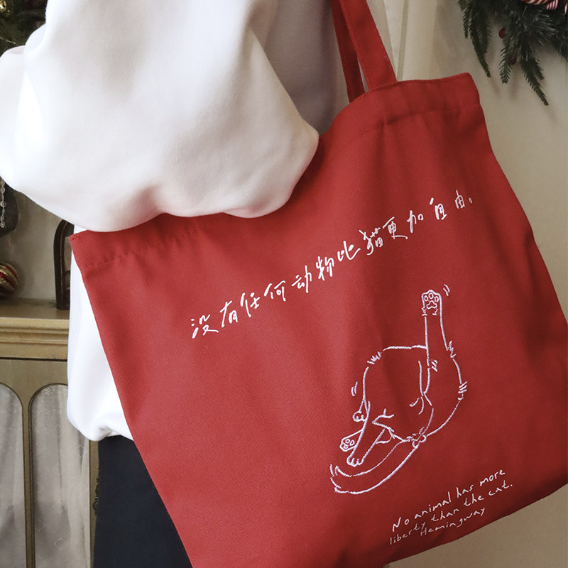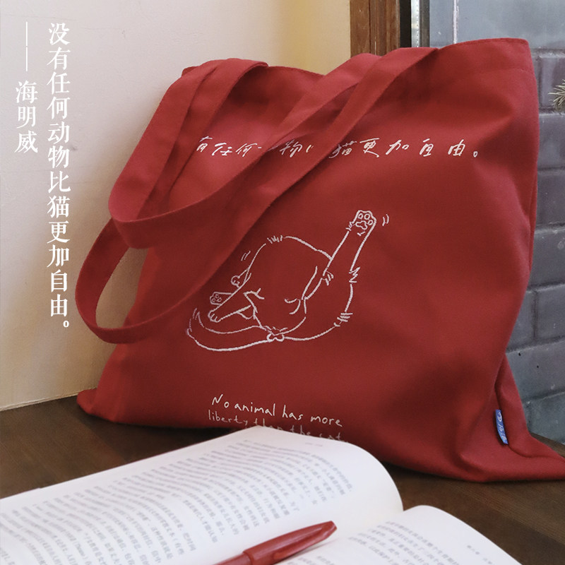 📚 后浪官方正版 作家与猫系列帆布包 海明威语录 文化创意红色帆布袋单肩包 文艺新年礼物