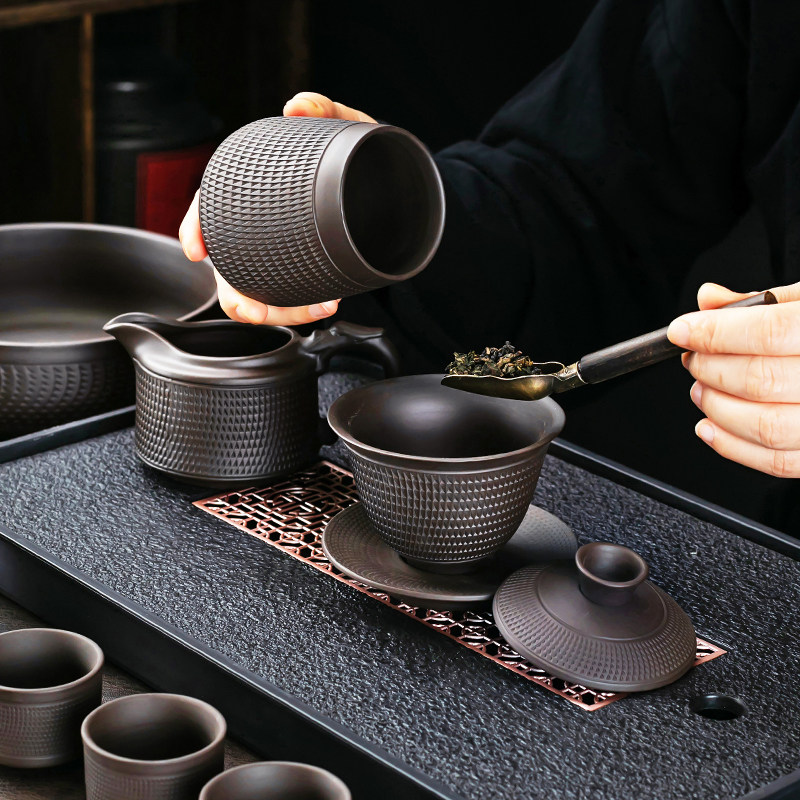 📚 紫砂跳刀功夫茶具2025新款汉瓦泡茶壶茶杯整套泡茶器家用茶具套装