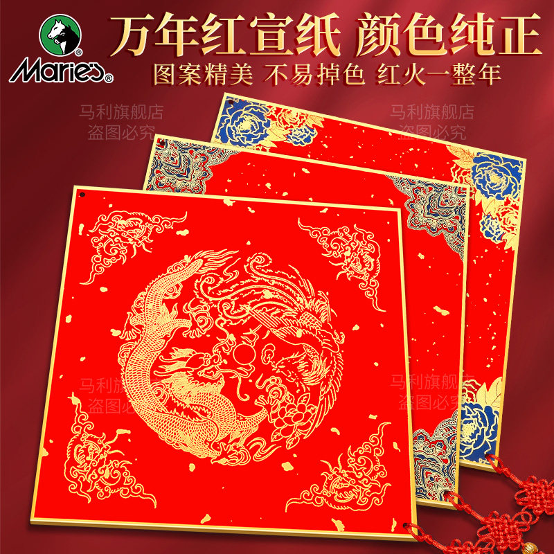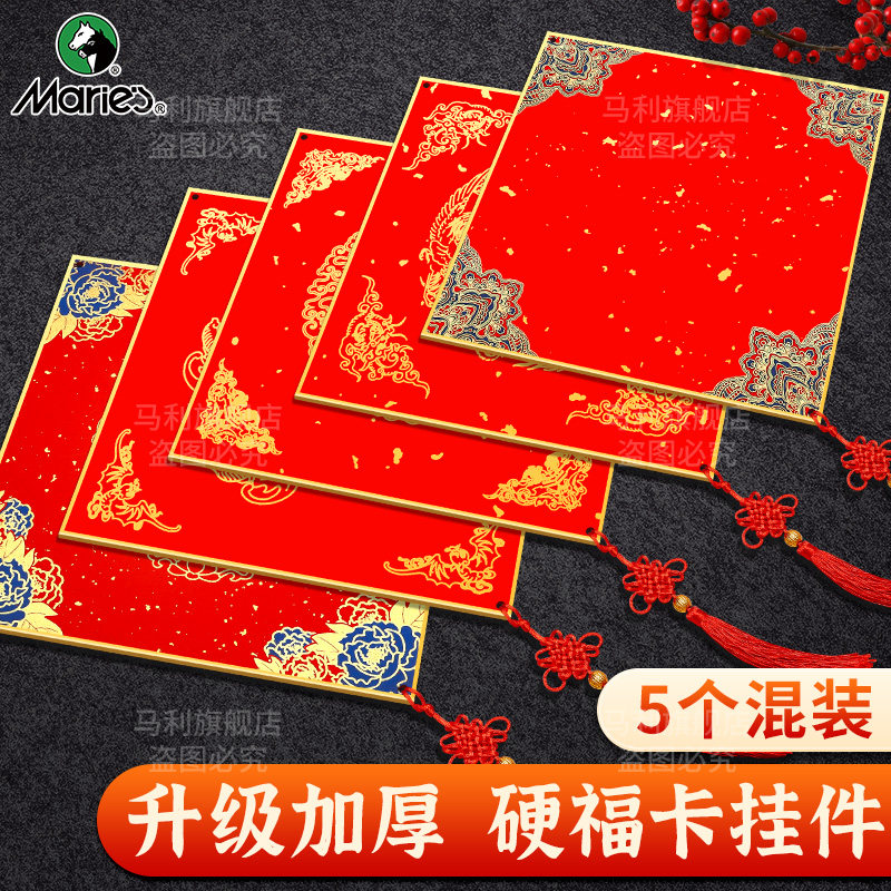 📚 马利2026年马年新款福字斗方硬卡万年红空白福卡写福字的红纸空加厚蜡染洒金宣纸对联专用手写春联纸纸书法纸