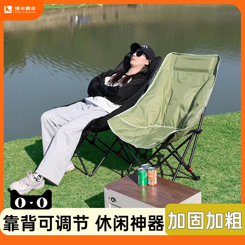 📚 户外折叠椅加高月亮椅可调节露营椅子便携式躺椅沙滩钓鱼野餐椅凳