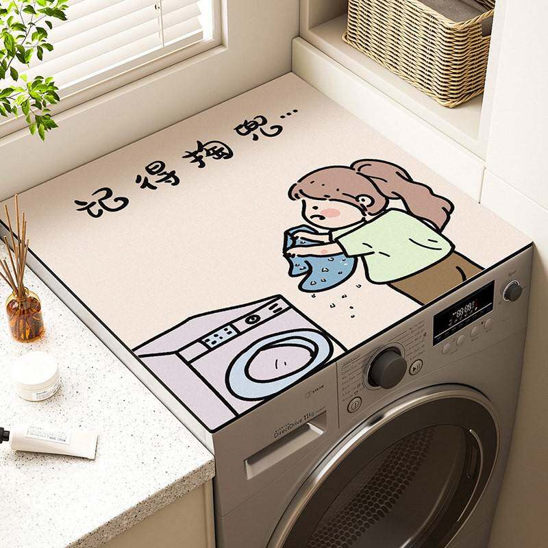 📚 3D硅藻泥滚筒洗衣机盖垫吸水防晒防尘罩床头柜台面垫子冰箱盖布垫