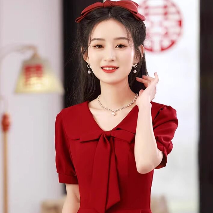 📚 红色晚礼服2025新款高级感轻奢小众主持人年会艺考气质连衣裙女