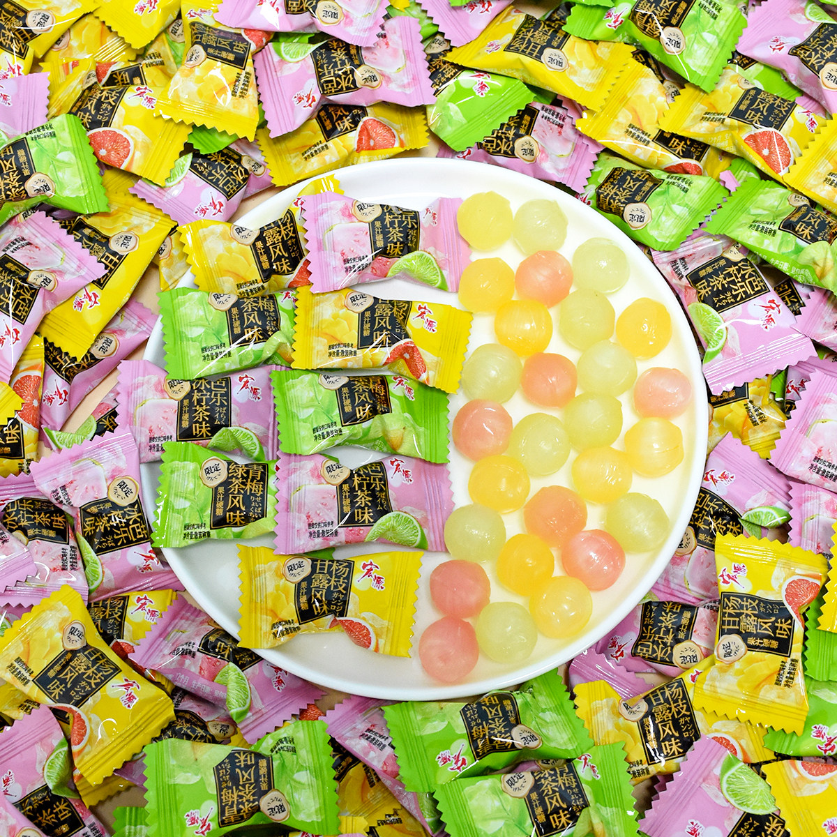 📚 【宏源水果糖】青梅绿茶风味果汁硬糖芭乐冰柠茶味杨枝甘露味糖果