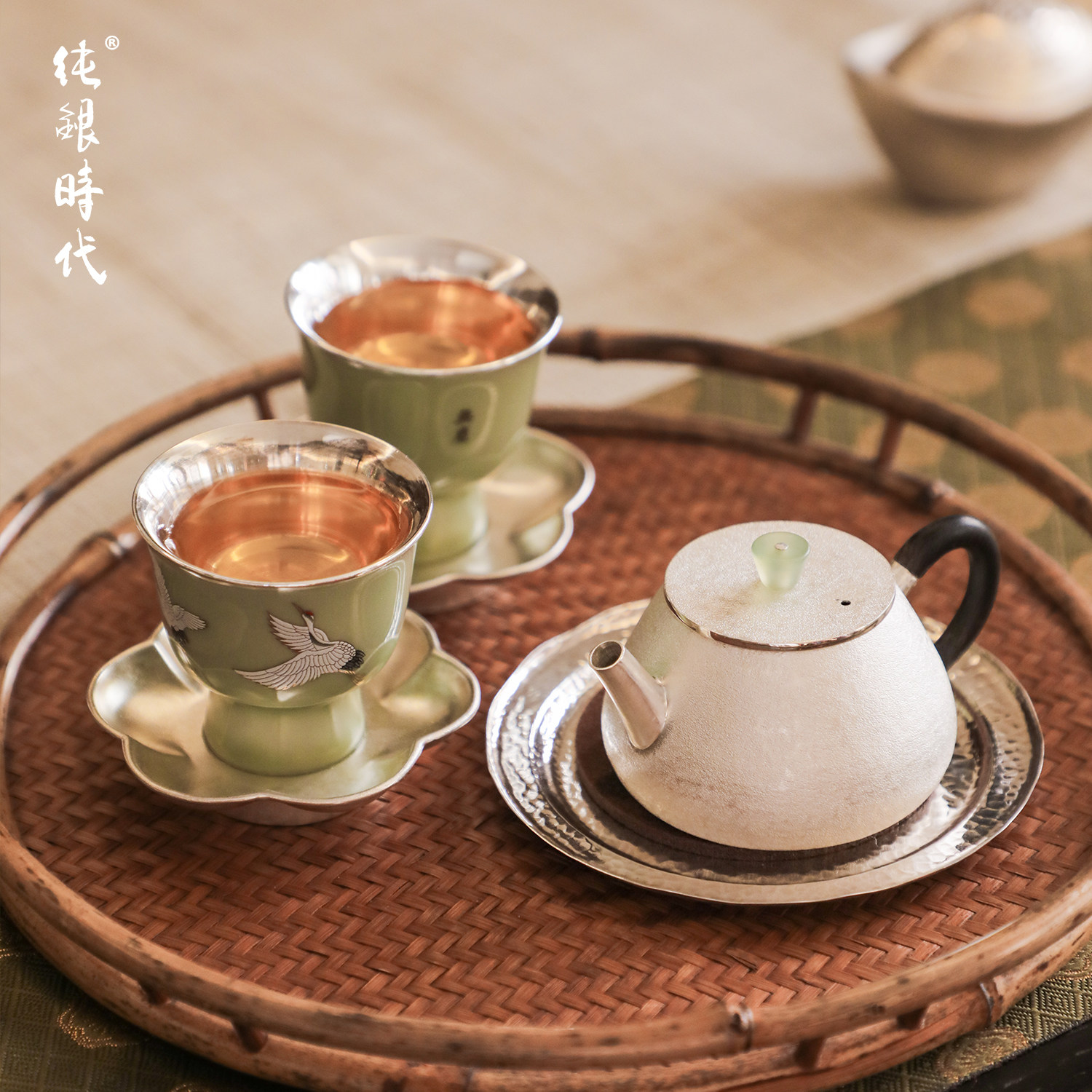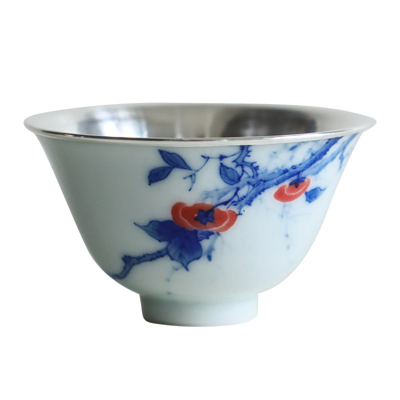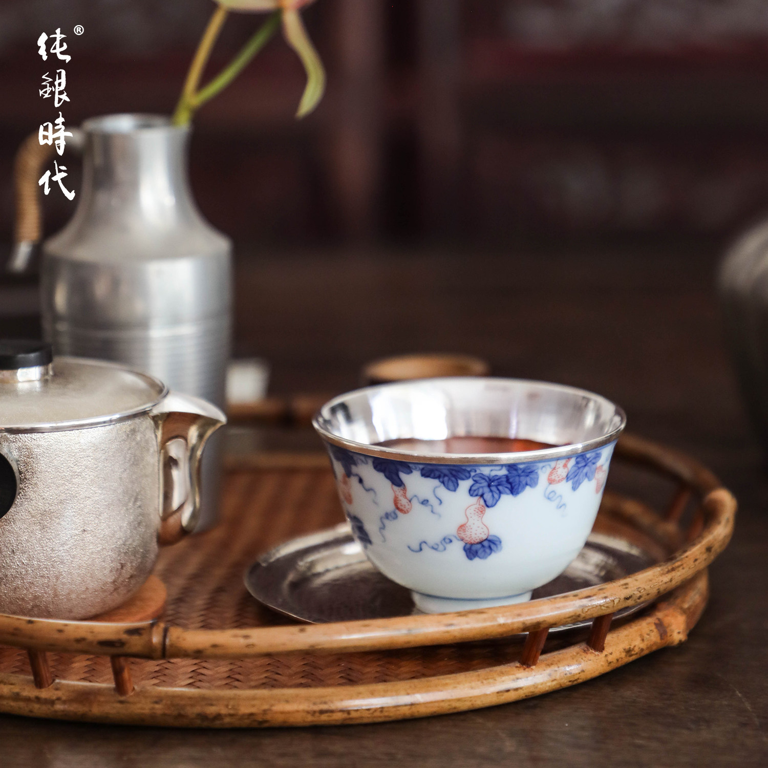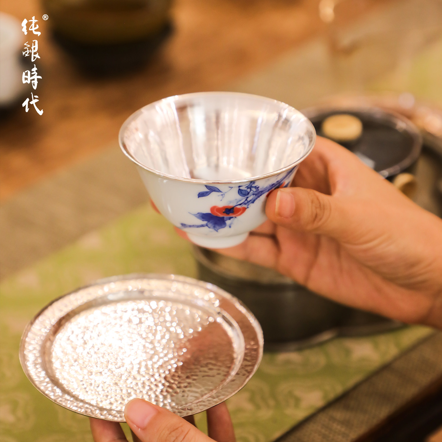 📚 纯银时代 手绘青花瓷包银杯999足银主人杯个人杯景德镇青花茶杯
