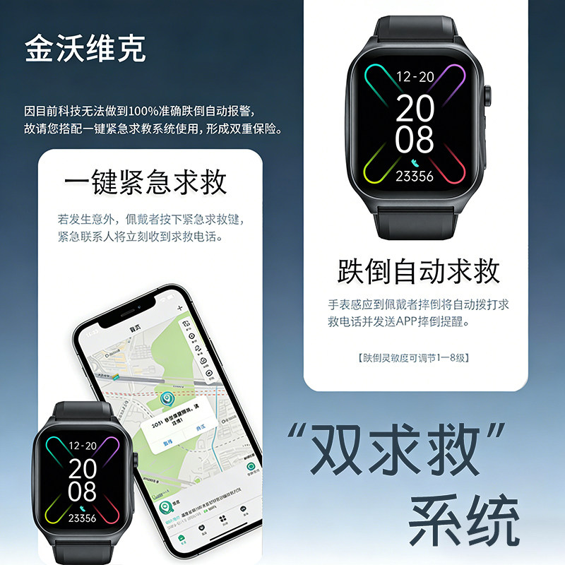 📚 【摔倒报警】可插卡老人专用电话手表GPS定位防走丢一键求救跌倒自动电子安全围栏血压心率健康监测智能手环