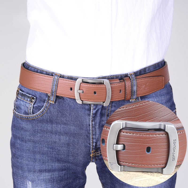 📚 七匹狼男士皮带真皮针扣腰带休闲青年学生品牌加宽款扣眼裤带软皮