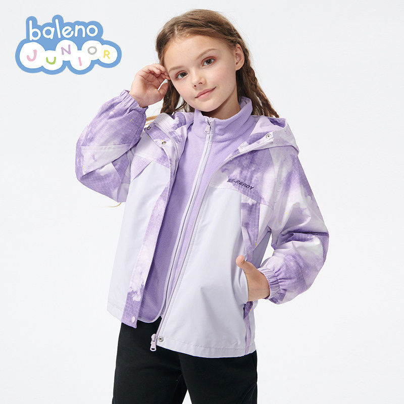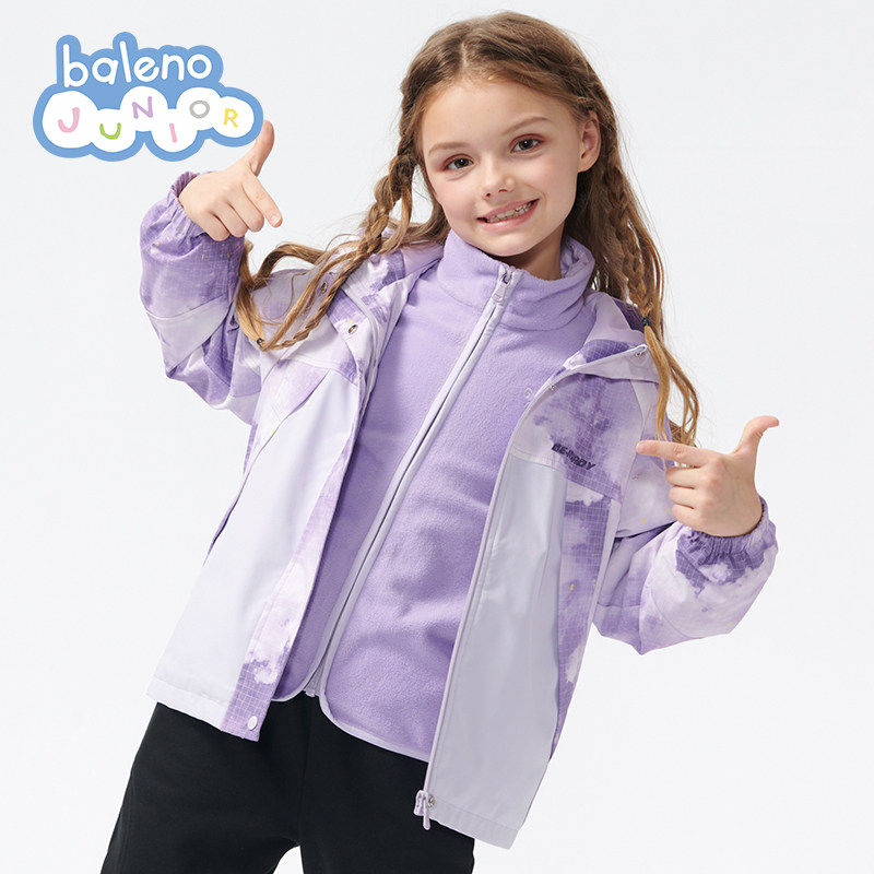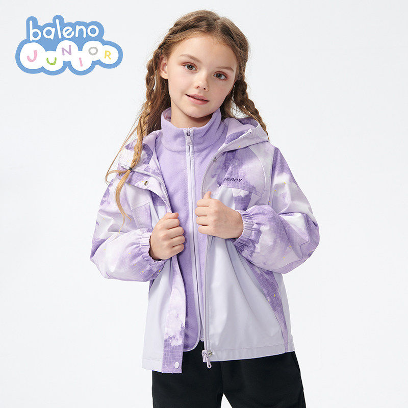 📚 baleno junior春秋女童扎染印花布绒内胆三合一防风连帽时尚外套Z