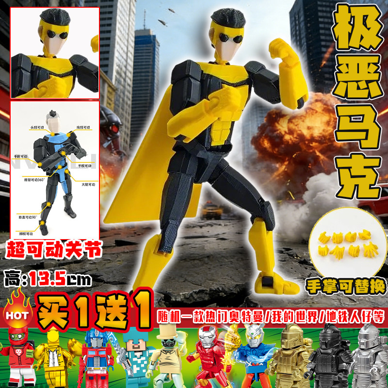 📚 新款无敌少侠狂人马克关节超可动人偶3d打印模型摆件儿童拼装玩具