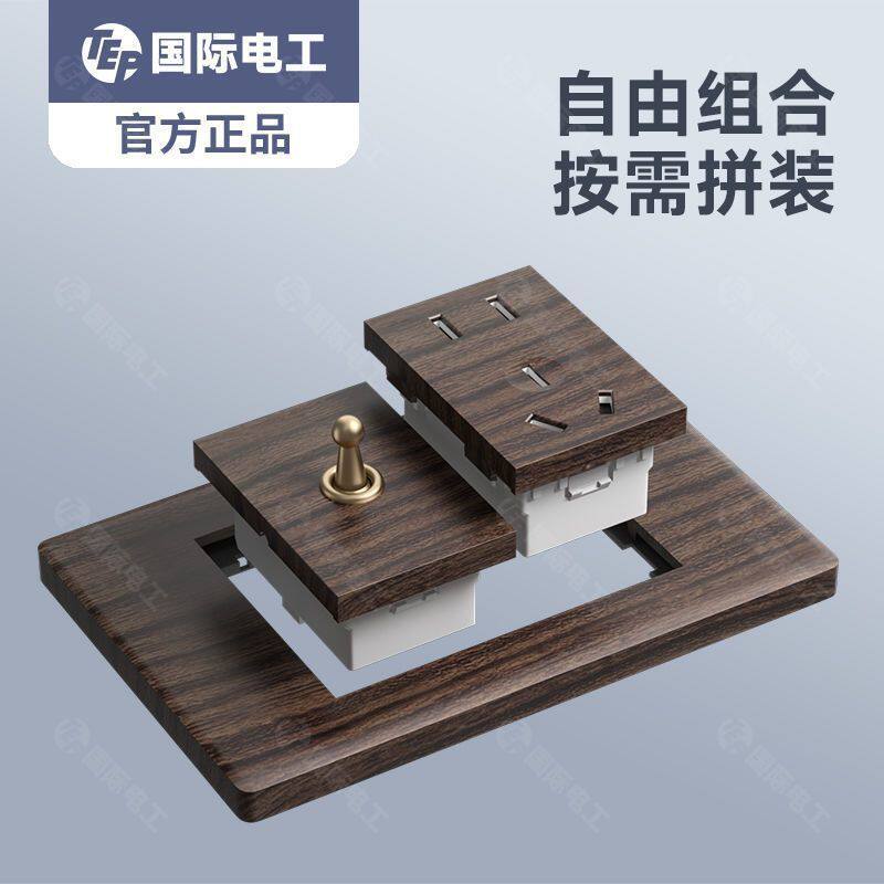 📚 TEP国际电工开关插座118型木纹三联五孔四位六九孔二十孔家用拨杆