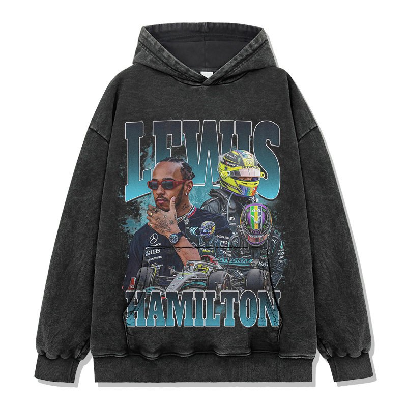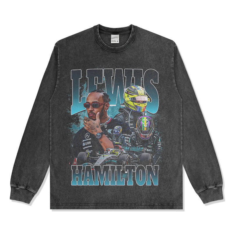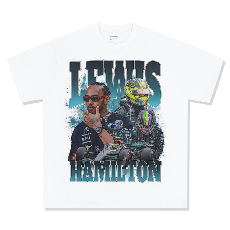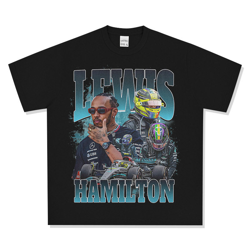 📚 刘易斯·汉密尔顿Lewis HamiltonF1赛车美式复古印花水洗宽松短袖