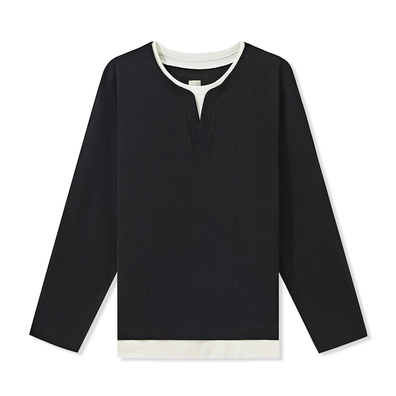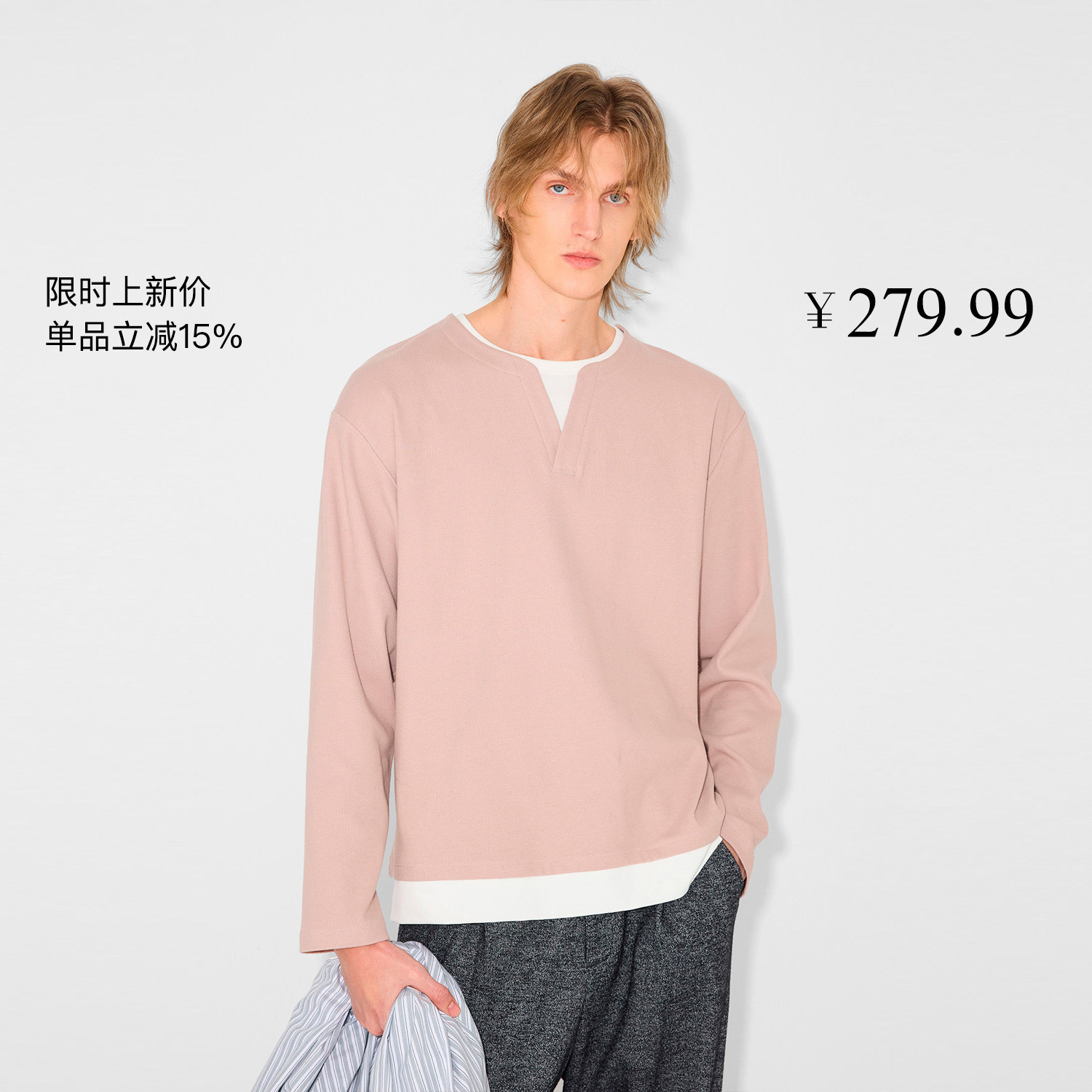 📚 UNICA HOMME/白敬亭同款 撞色假两件t恤男士上衣长袖亨利衫男