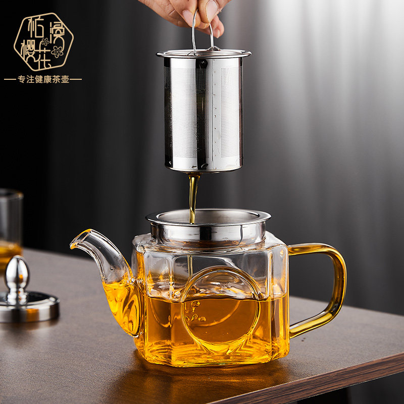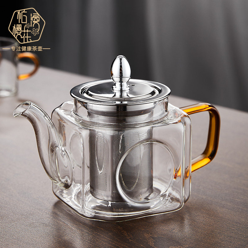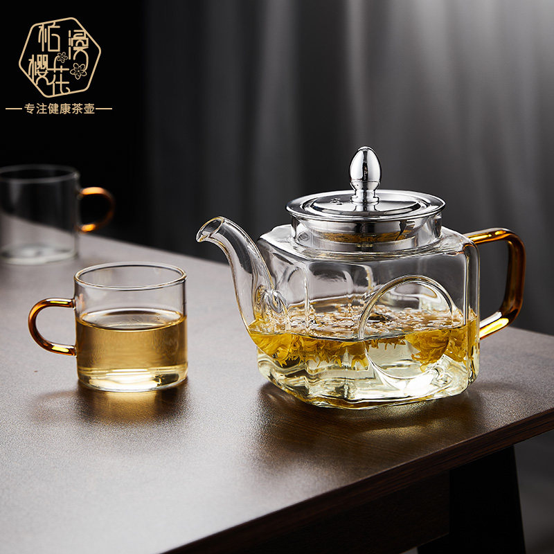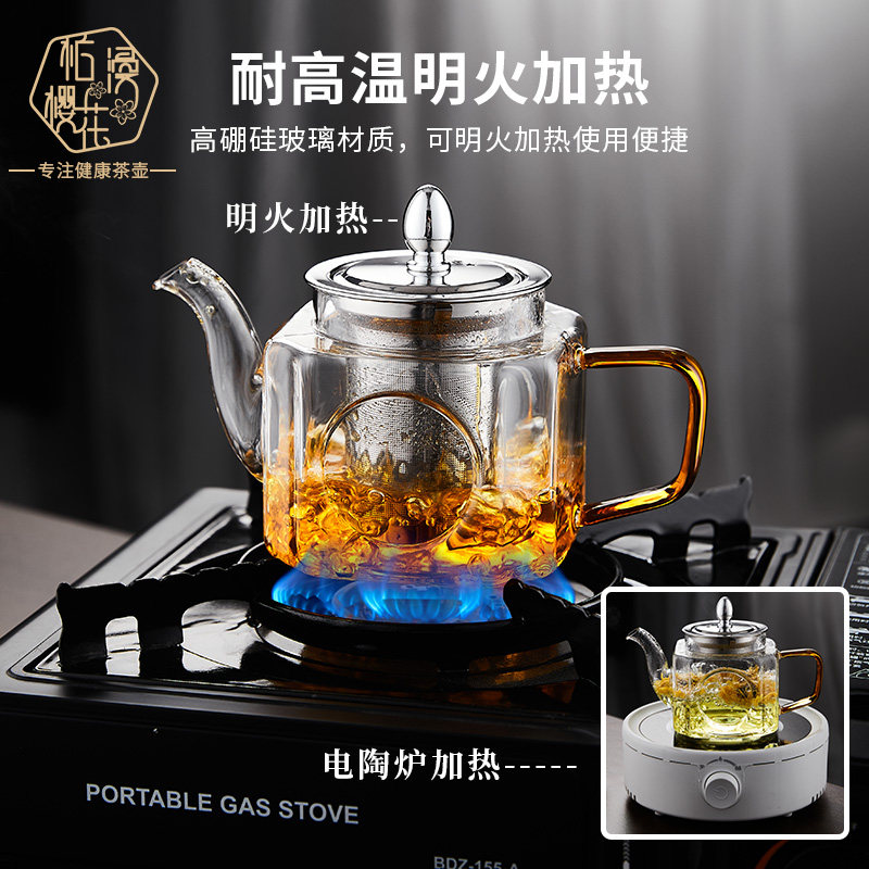 📚 柏漫樱花加厚玻璃茶壶耐高温玻璃花茶壶高鹏硅泡茶壶茶水分离茶壶