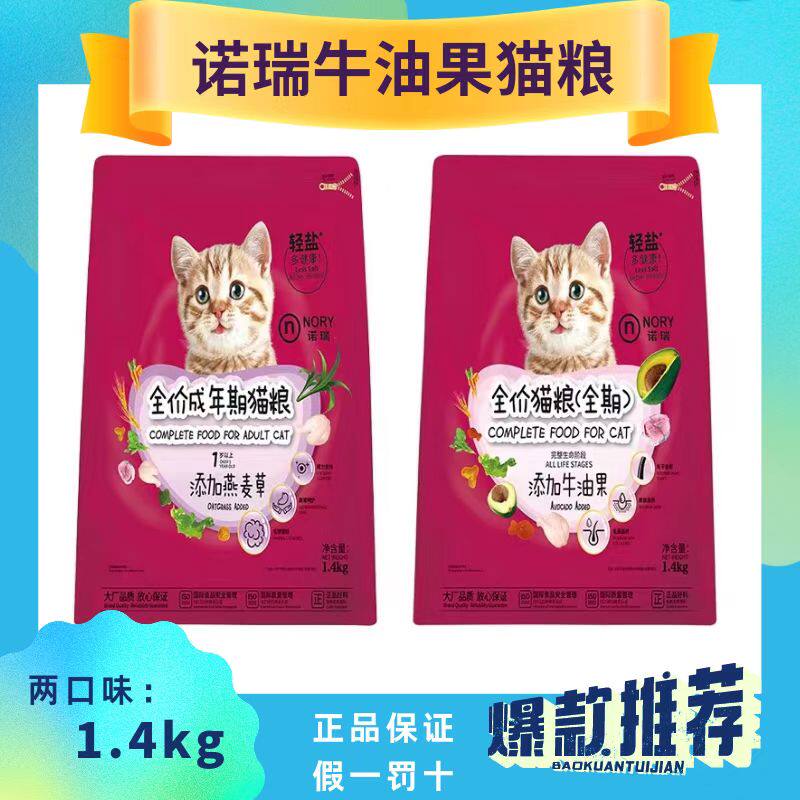 📚 诺瑞猫粮添加牛油果美毛猫粮添加燕麦草去毛球猫粮低盐健康全阶段