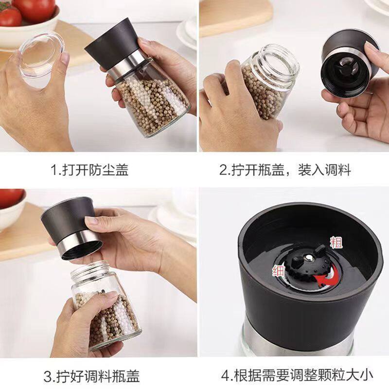 📚 手动研磨器胡椒花椒海盐研磨瓶家用高档磨粉器现磨可调节研磨瓶