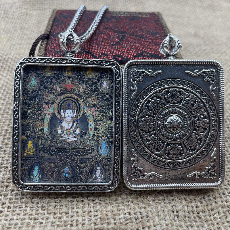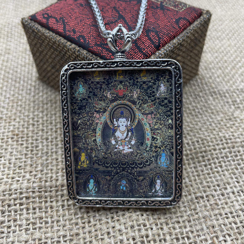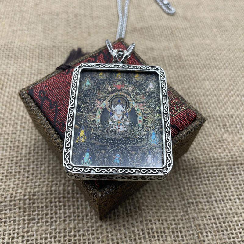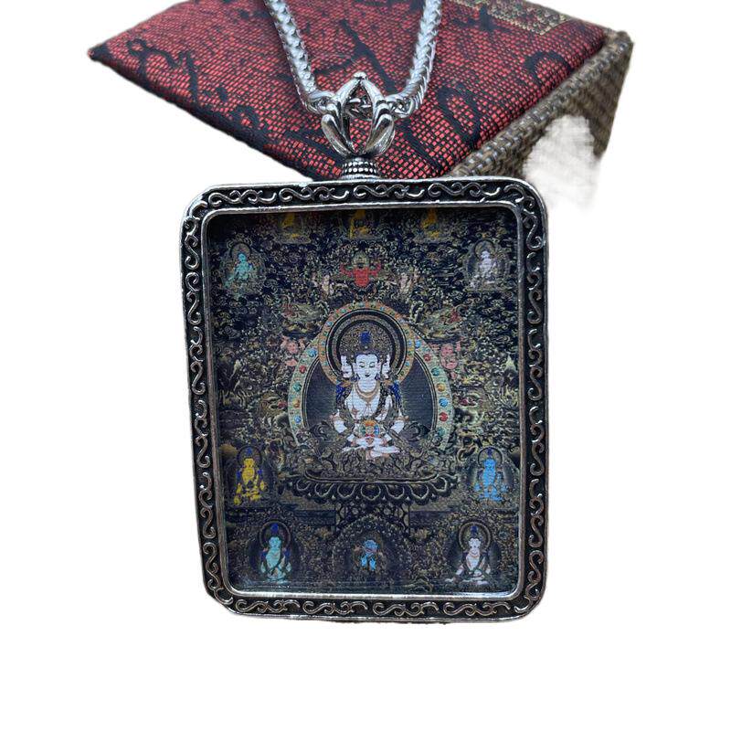 📚 快手抖音直播万佛朝宗唐卡挂坠子复古做旧泰银吊坠莫高窟文化项链