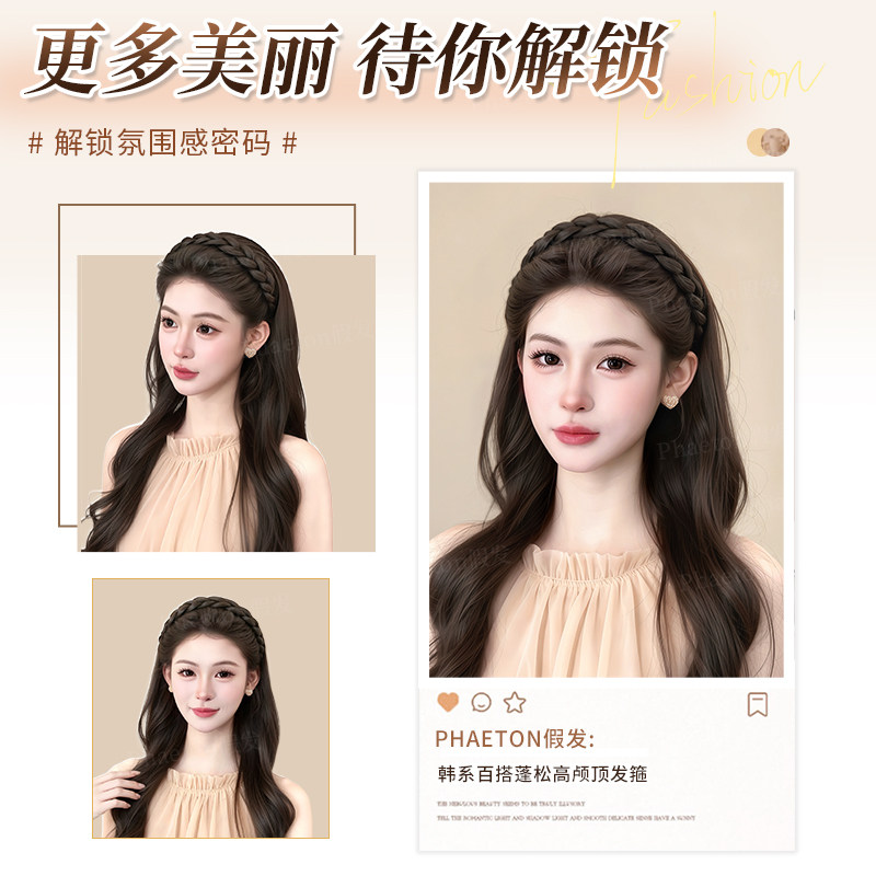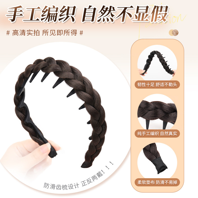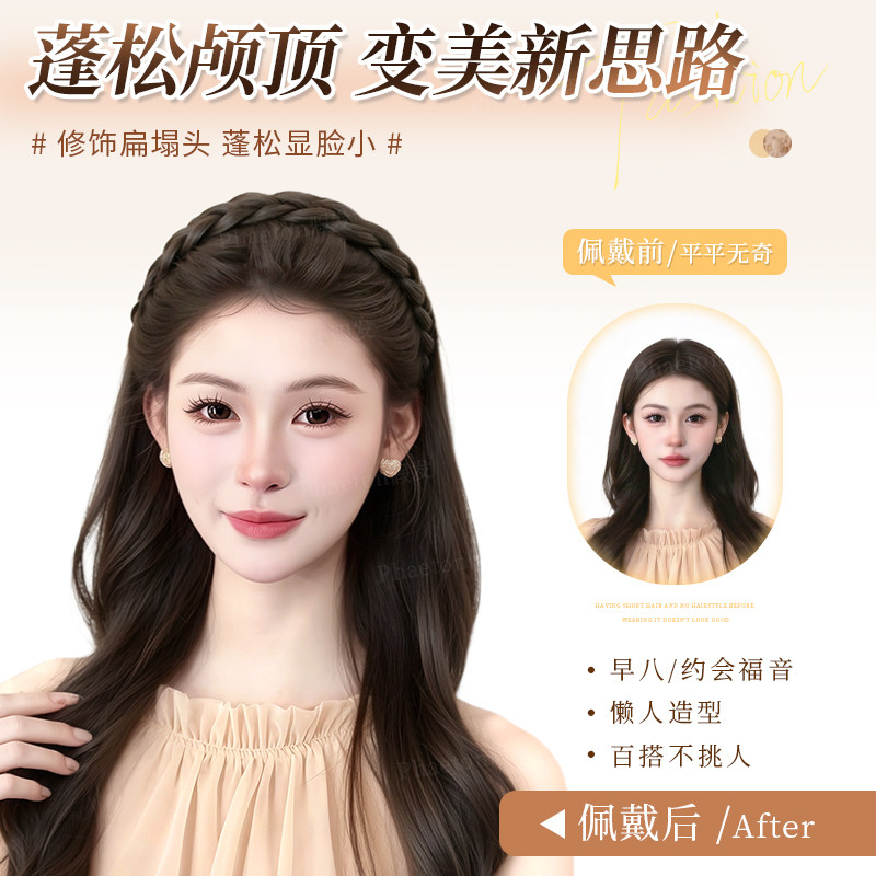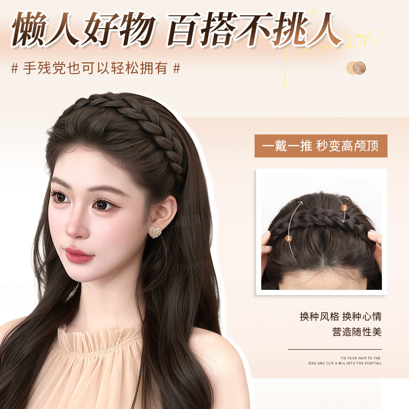 📚 鱼骨辫发箍假发女仿真发手工编织麻花辫子自然蓬松高颅顶假发头饰