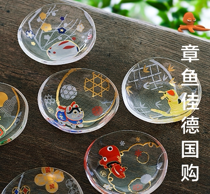 📚 日本Aderia石冢硝子十二生肖玻璃杯子碟子清酒杯白酒烧酒茶小盘子