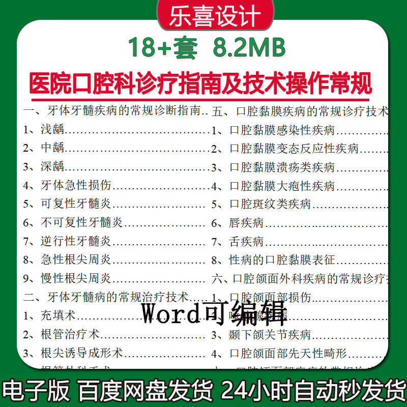 📚 医院口腔科口腔正畸颌面部疾病牙体牙髓疾病诊疗指南技术操作常规