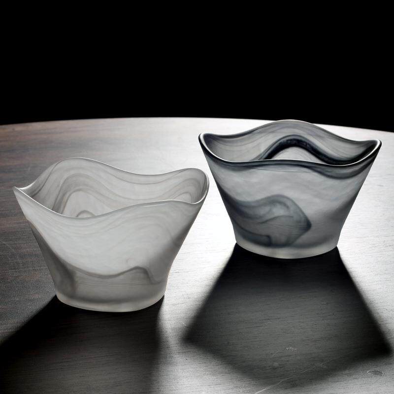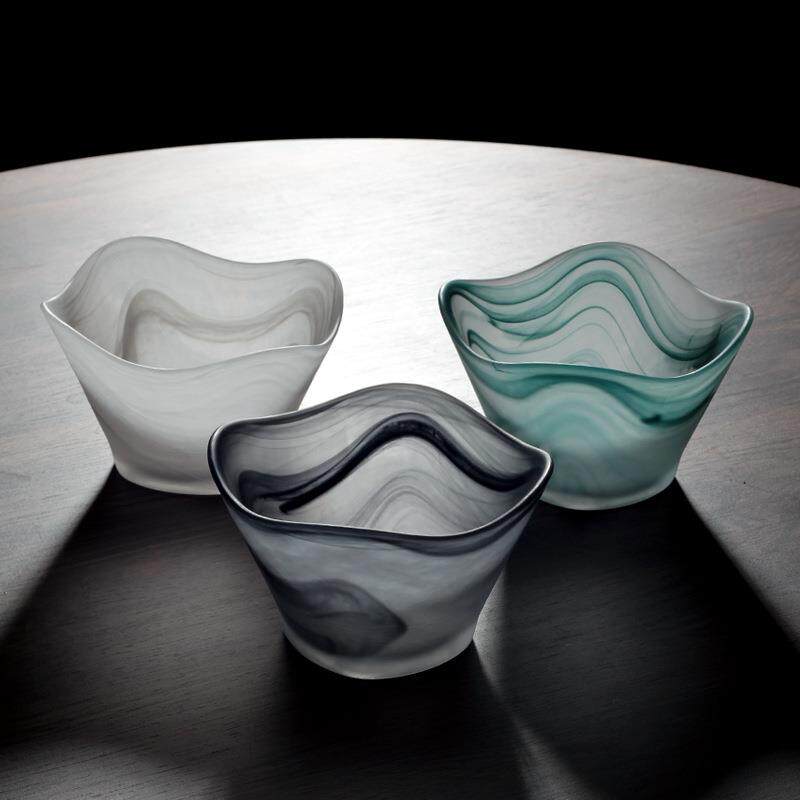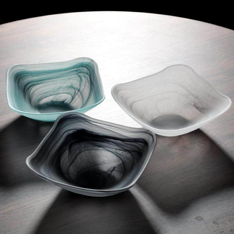 📚 轻奢玻璃水果盘碗碟套装云雾盘子高级感沙拉碗高颜值西餐盘餐厅用