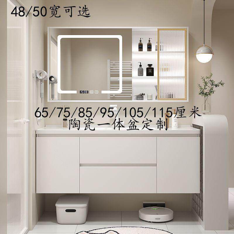 📚 新款奶油风浴室柜陶瓷一体盆65/75CM85/95公分105/115厘米洗漱台