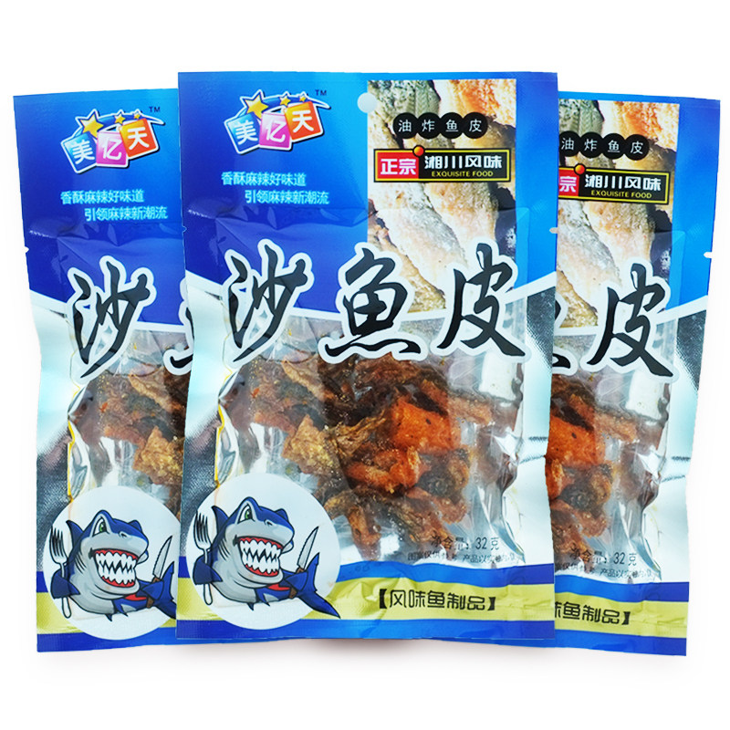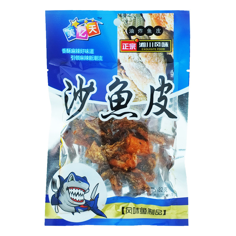 📚 美亿天油炸鱼皮32g*20包袋装沙鱼皮解馋办公室香辣休闲怀旧小零食