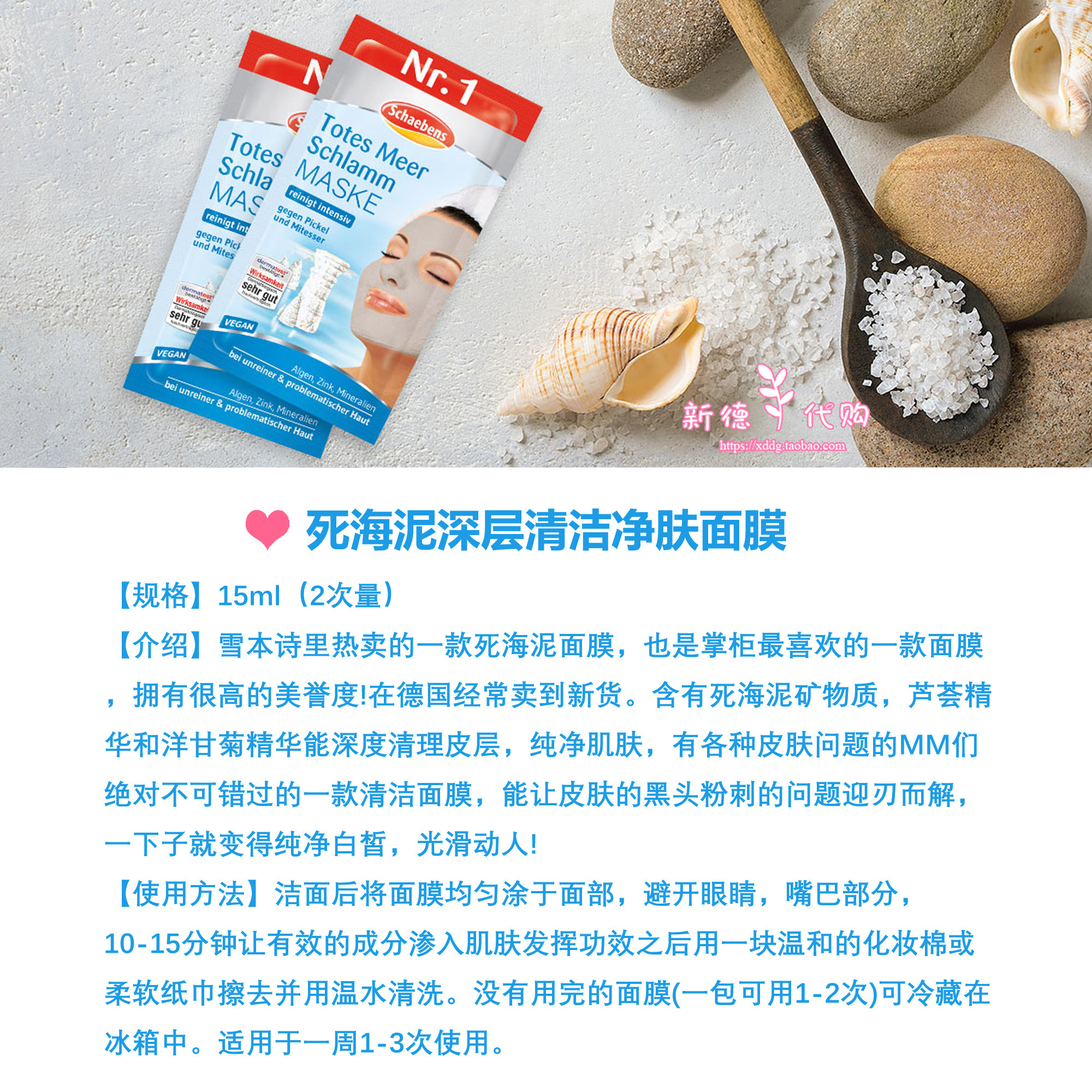 📚 5片包邮 德国雪本诗Schaebens 死海泥深度清洁毛孔净肤面膜