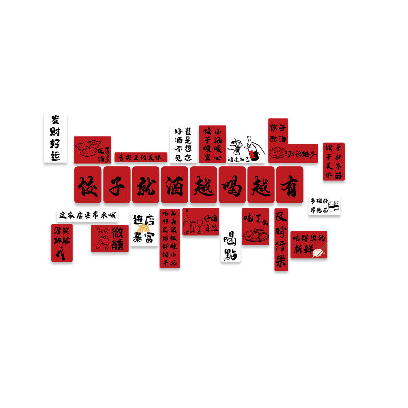 📚 水饺子就酒越喝越有店墙面装饰画海报宣传东北手工贴纸馆文化广告