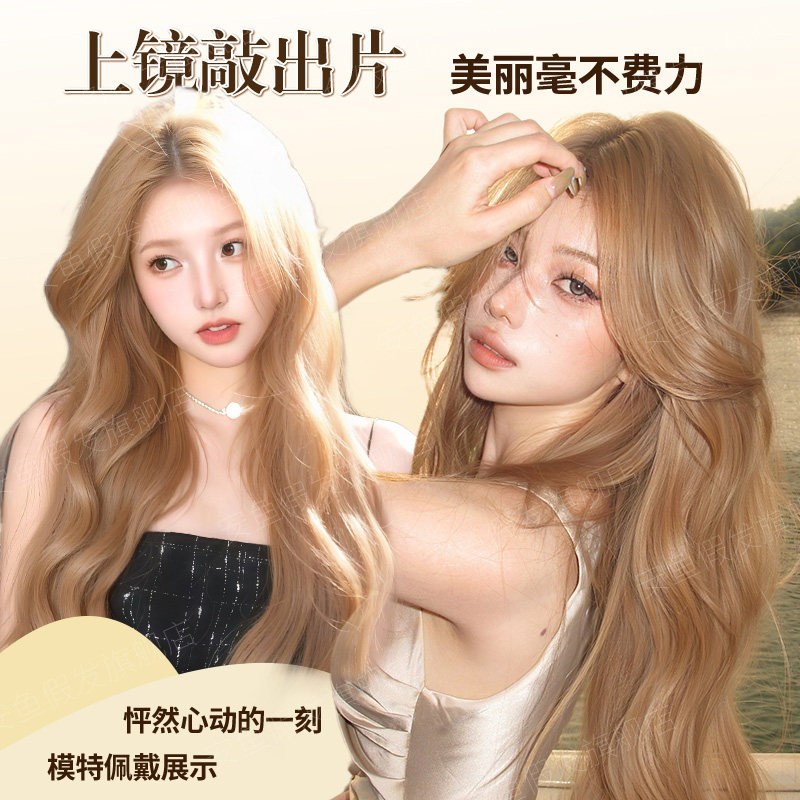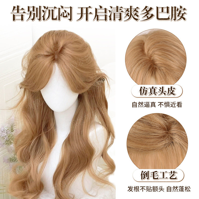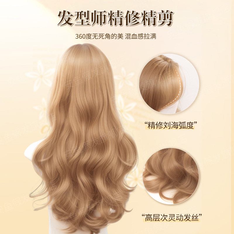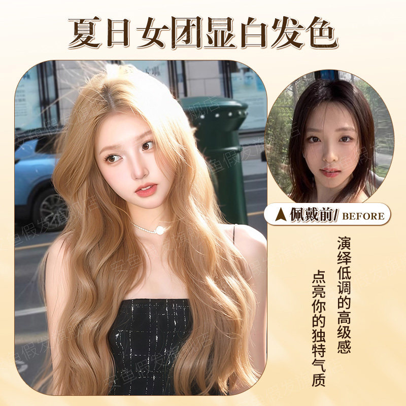 📚 假发女长发夏季大波浪金色长卷发女团风氛围感仿真人发中分全头套