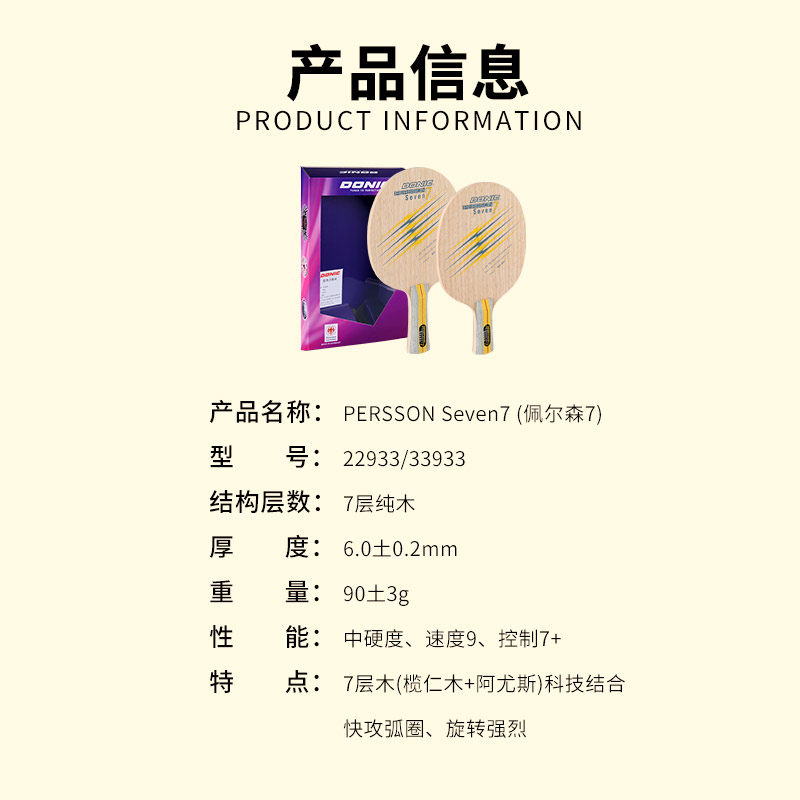 📚 DONIC多尼克佩尔森7层纯木乒乓球拍底板佩冠碳素专业乒乓球板正品