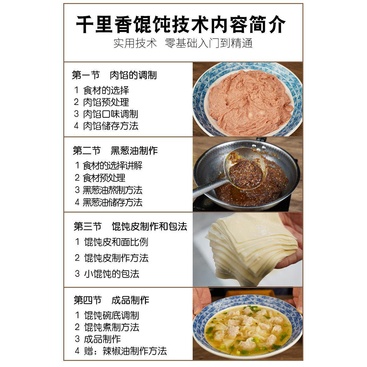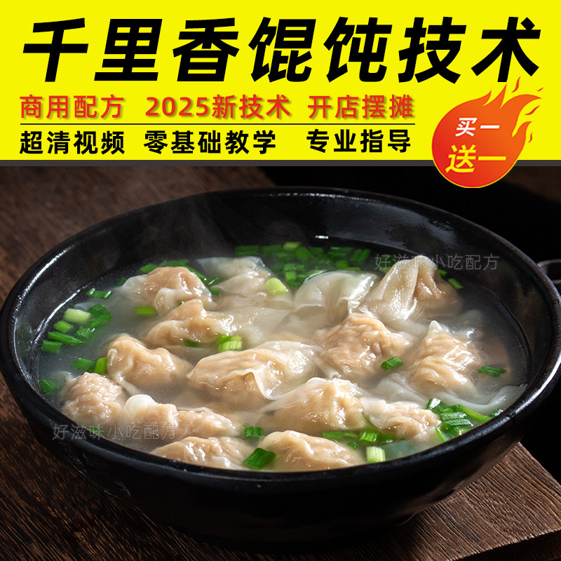 📚 福建千里香馄饨混沌小吃技术视频黑葱油配料配方皮肉馅商用教程