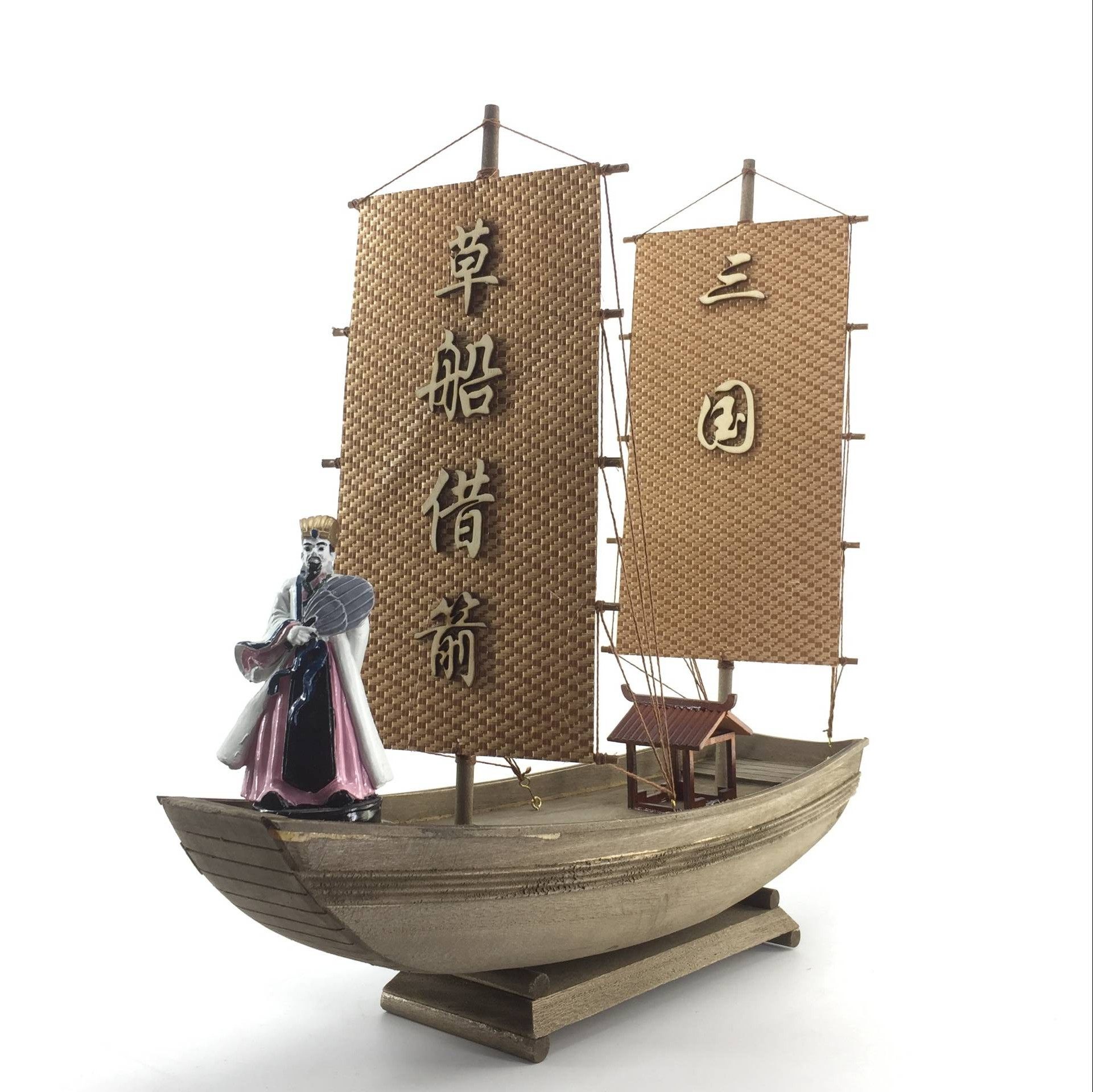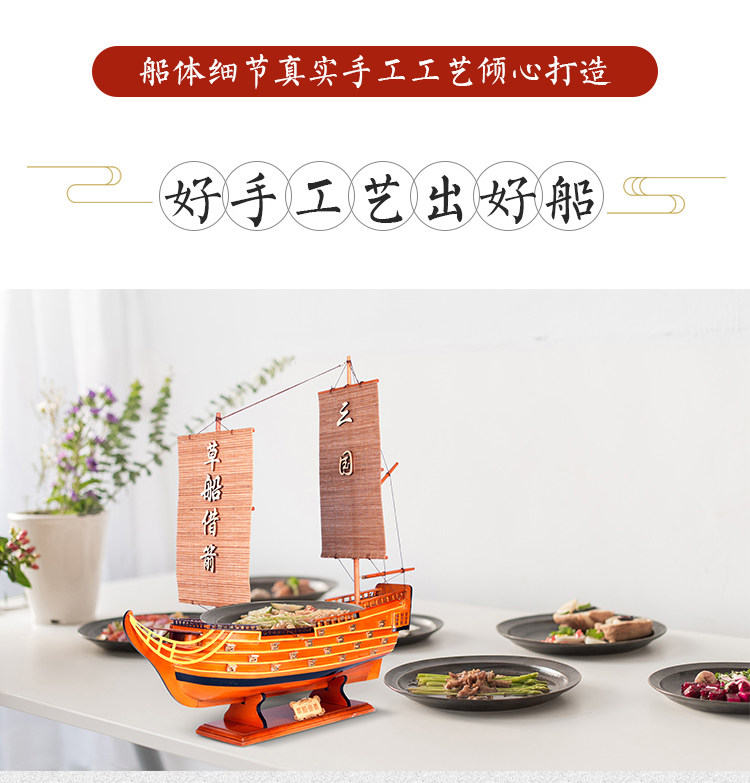 📚 木制帆船模型摆件室内装饰餐饮船创意诸葛亮草船借箭餐具盘用品