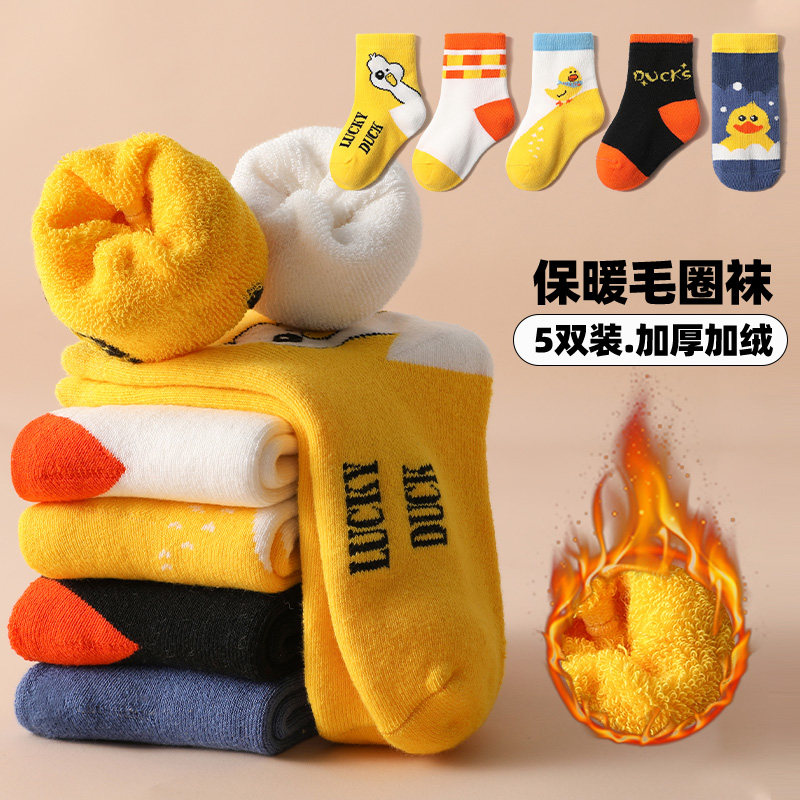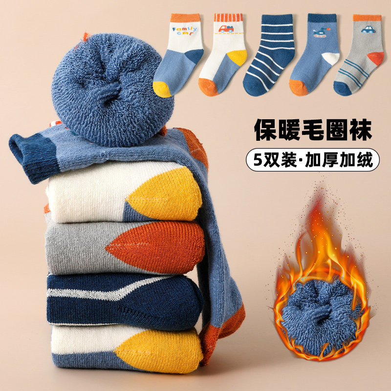 📚 男童袜子秋冬季加厚毛圈纯棉中筒棉袜加绒男宝宝女童儿童保暖童袜
