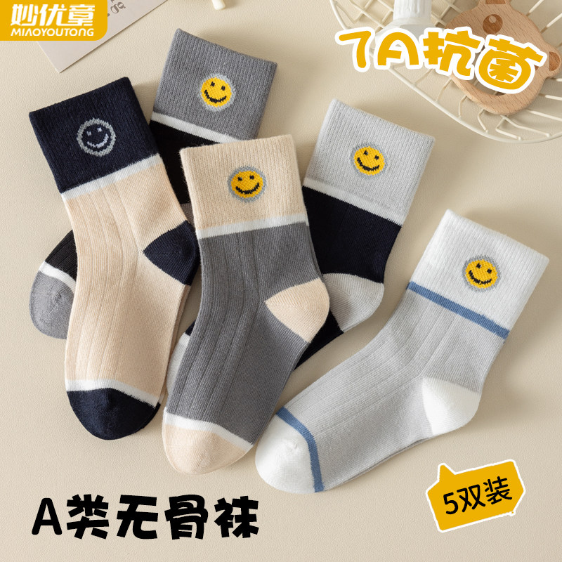 📚 儿童袜子春秋厚款男童女童宝宝棉袜小孩秋冬季中大童中筒笑脸童袜