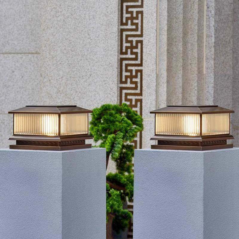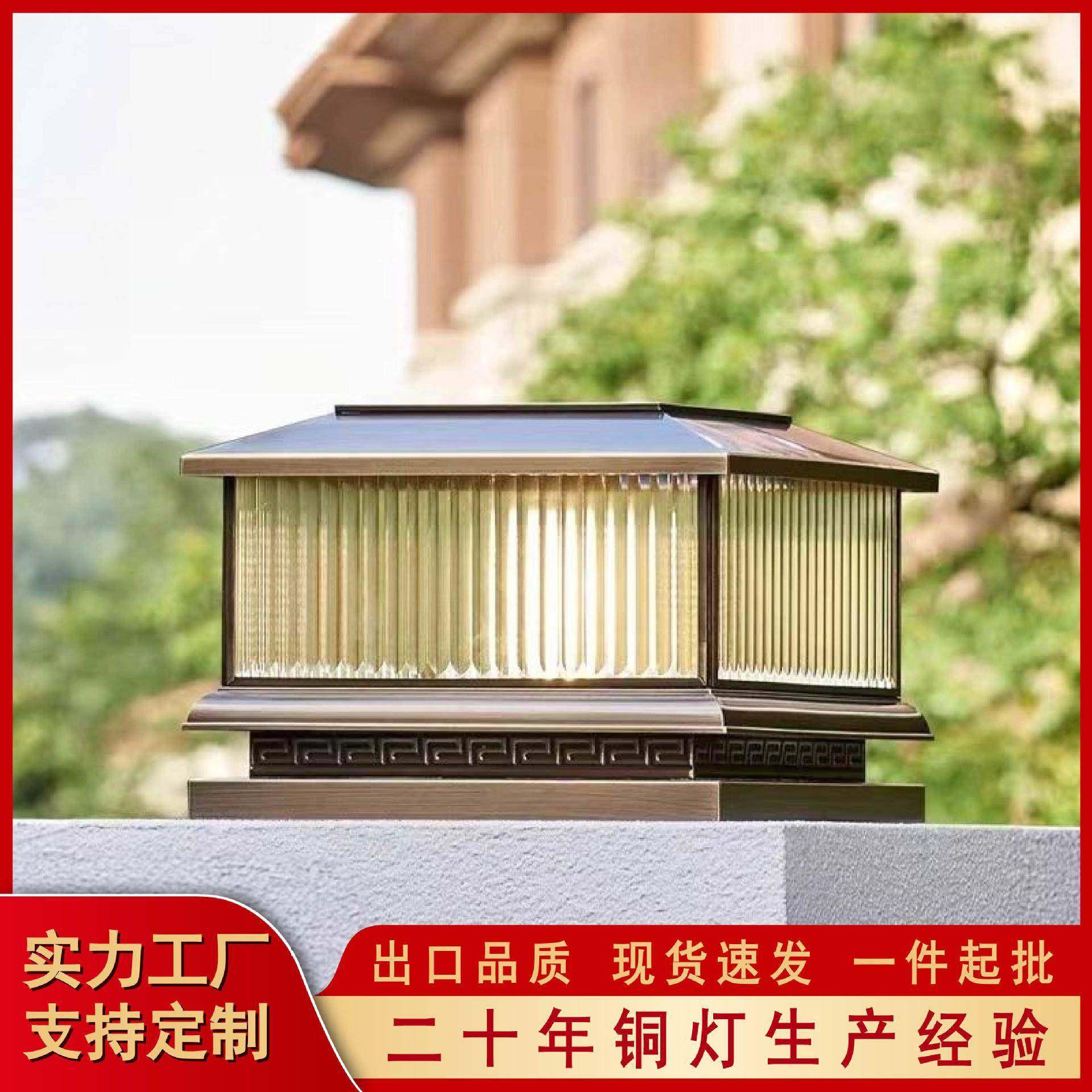 📚 全铜大灯户外别竖纹平盖墅门子柱院灯农村大门口太阳能柱子灯庭院