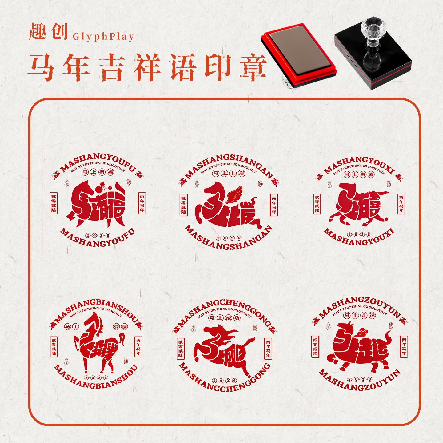 📚 2026马年印章马年大吉祝福语马踏钱程马到成功文创打卡新年礼品章