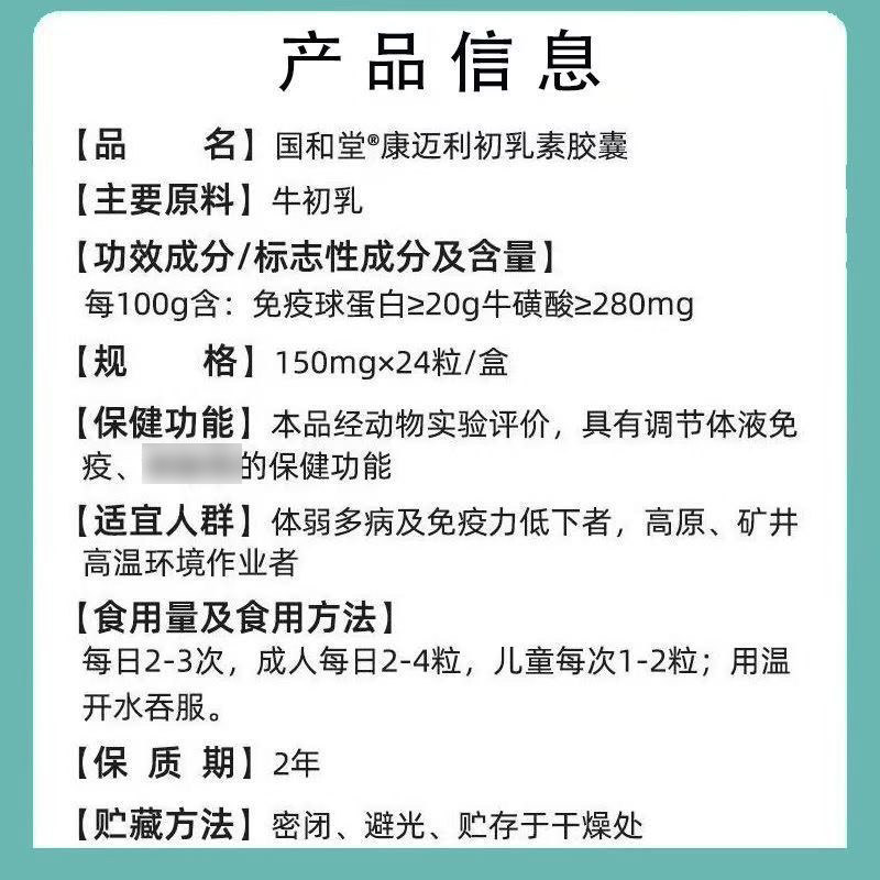 📚 3送1】国和堂康迈利初乳素胶囊24粒牛初乳增强体液免疫能力