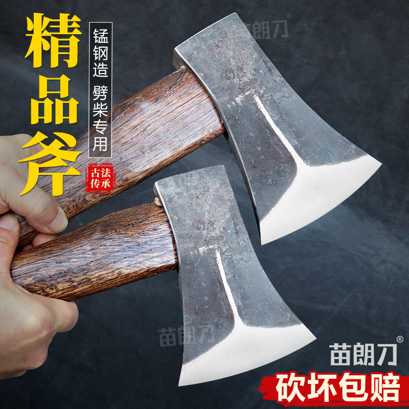 📚 苗朗刀轨道钢锻打霸王斧头家用劈柴砍树户外高锰钢全钢专用斧子